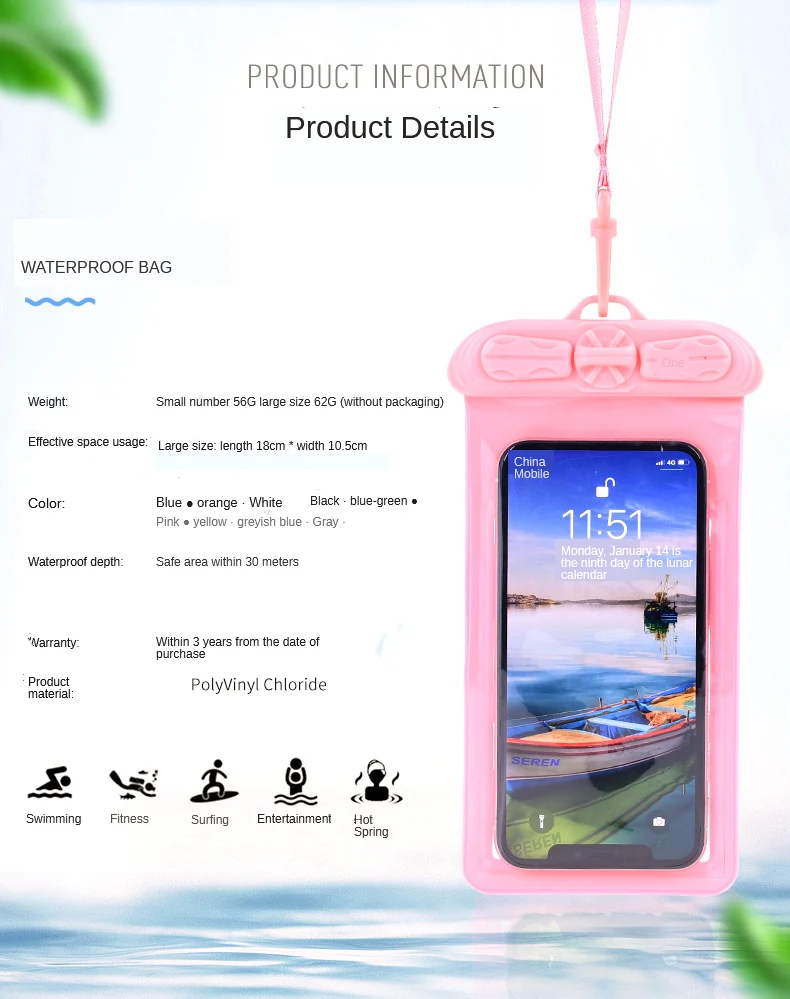 Водонепроницаемая сумка для Мобильный телефон 7,2 дюйма, прозрачный чехол для телефона для дайвинга, пляжная сумка для серфинга, плавательная сумка для горячей весны, мобильный телефон чехол для телефона