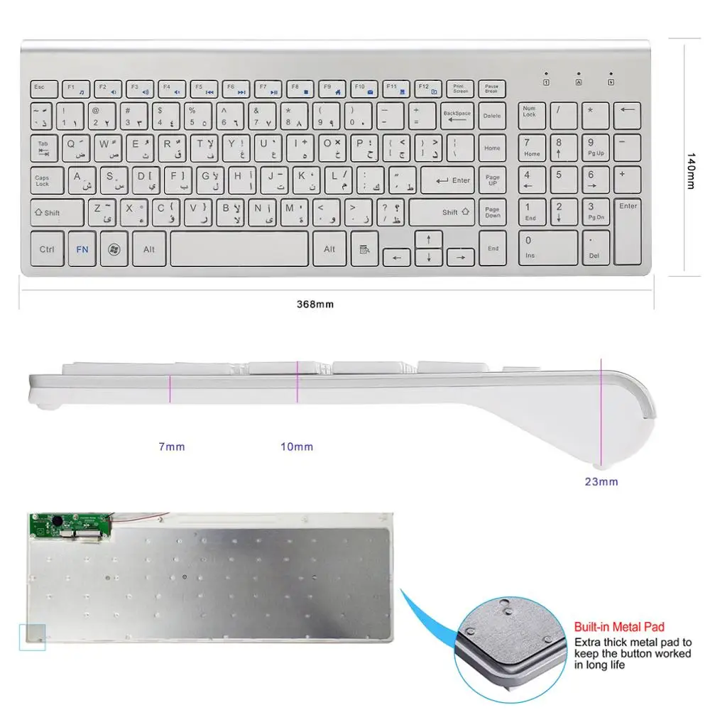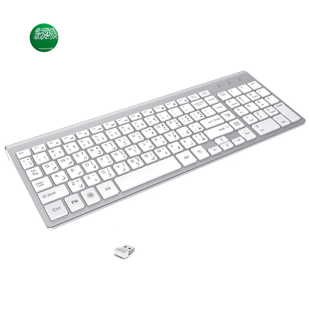Арабская и английская беспроводная клавиатура с 101 клавишами, 2,4 ГГц, тонкая беспроводная клавиатура с низким уровнем шума для ноутбука, Windows, ПК, настольного ПК, смарт-ТВ
