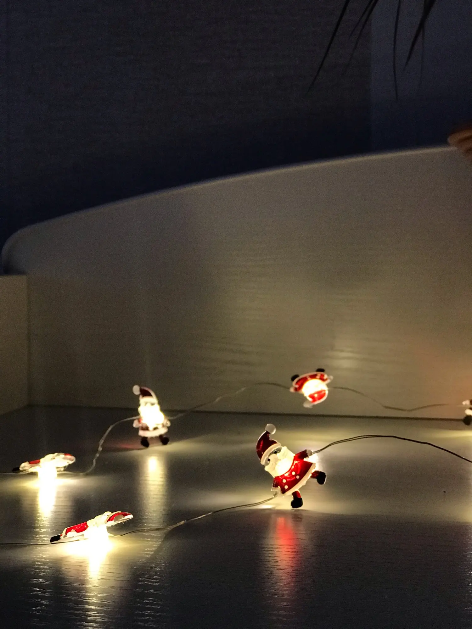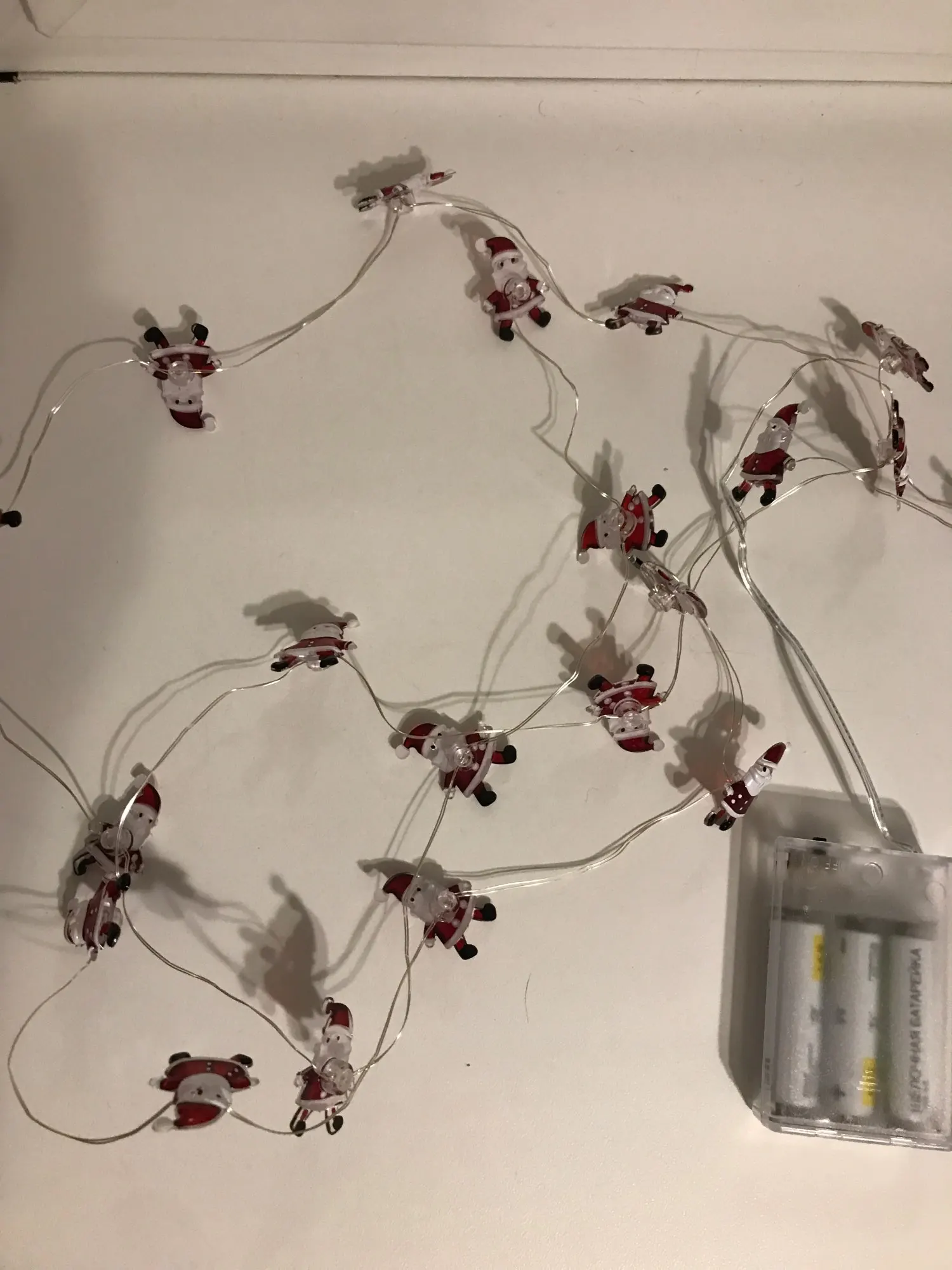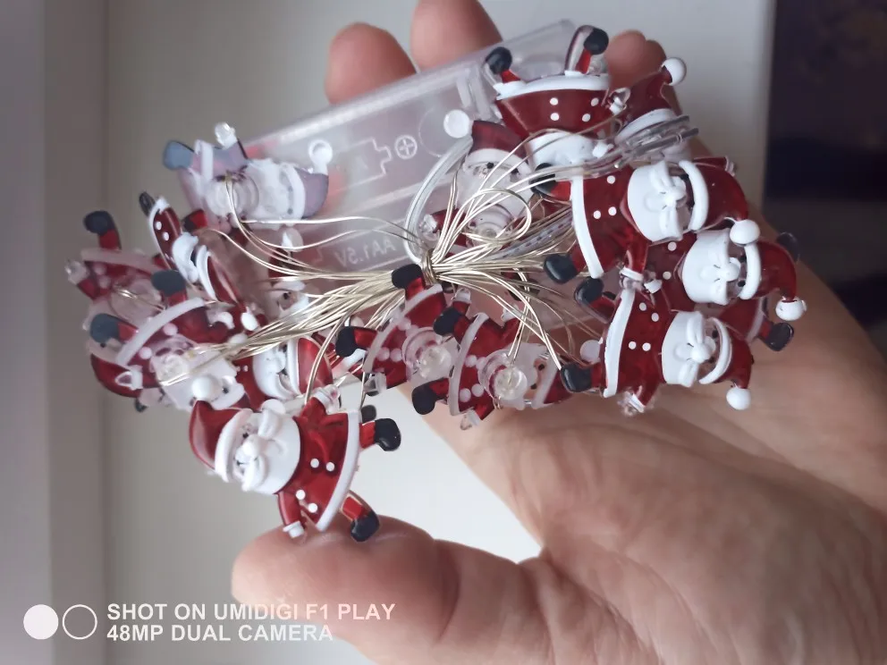 Классная гирлянда. Хорошенькие Санты! Не запаслась батарейками, не опробовала в деле.