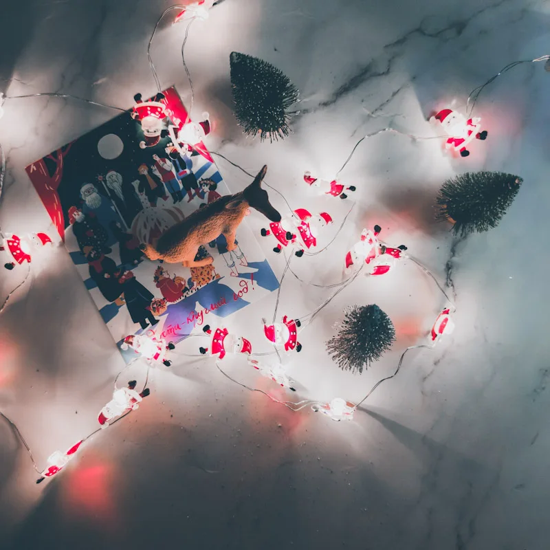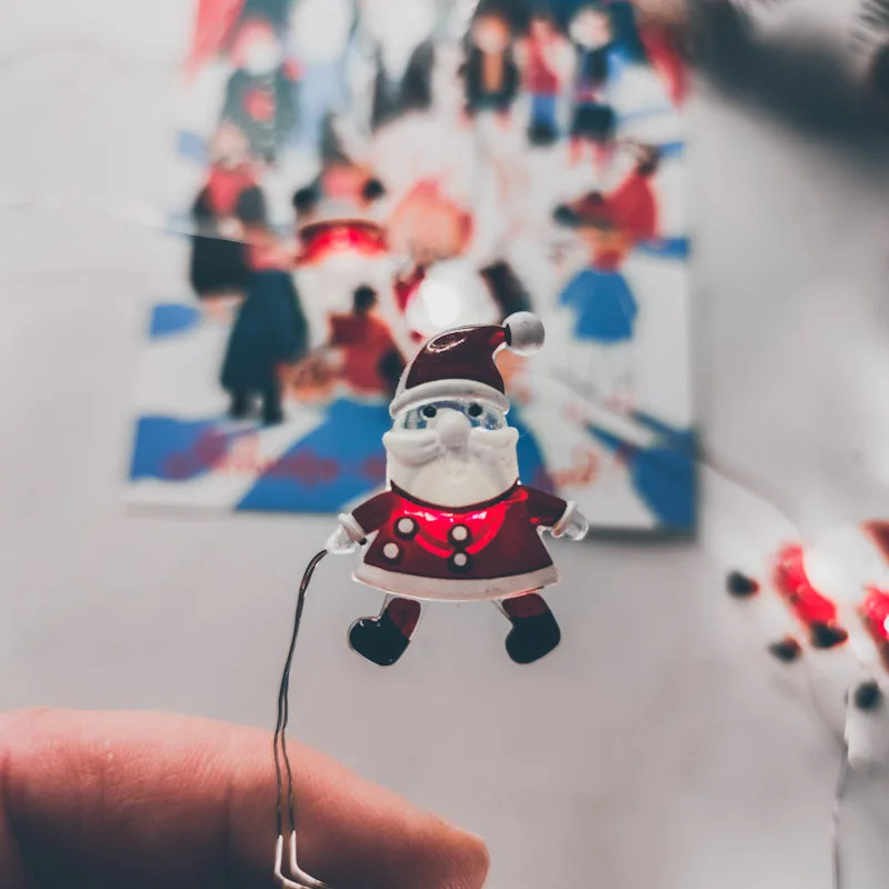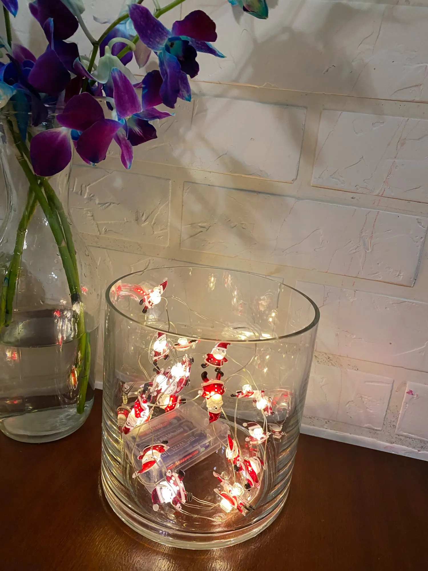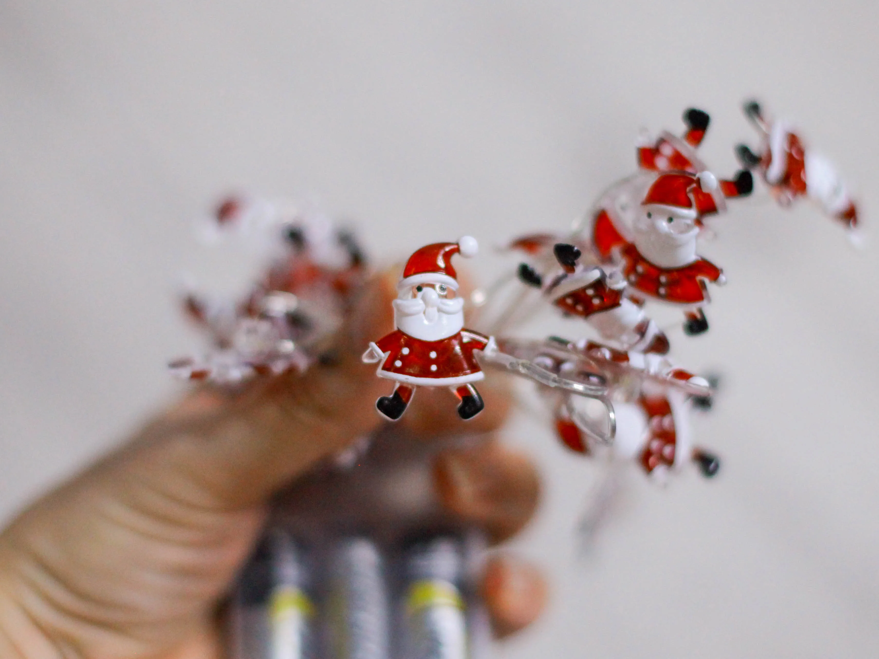 Классная гирлянда. Хорошенькие Санты! Не запаслась батарейками, не опробовала в деле.