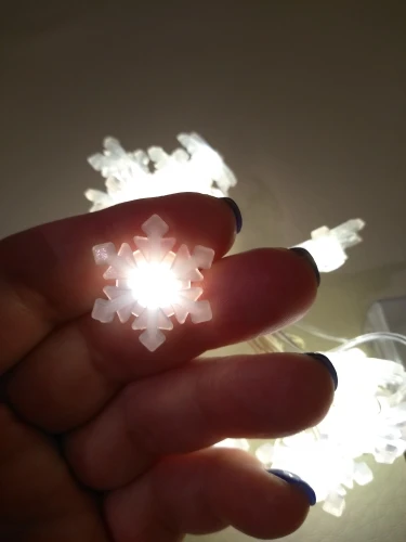 Прекрасно? Я рад, очень симпатичные снежинки. Работает от трёх пальчиковых батареек: можно даже в машине повесить. Супер!