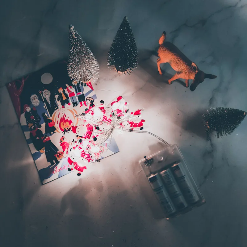 Доставка быстрая, товар соответствует описанию. Милие санты. Все работает. Батарейки в комплект не входят.