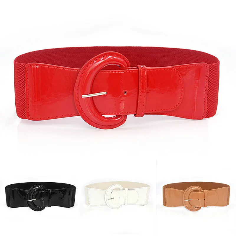 Ремень женский из искусственной лакированной кожи, черный, красный, белый