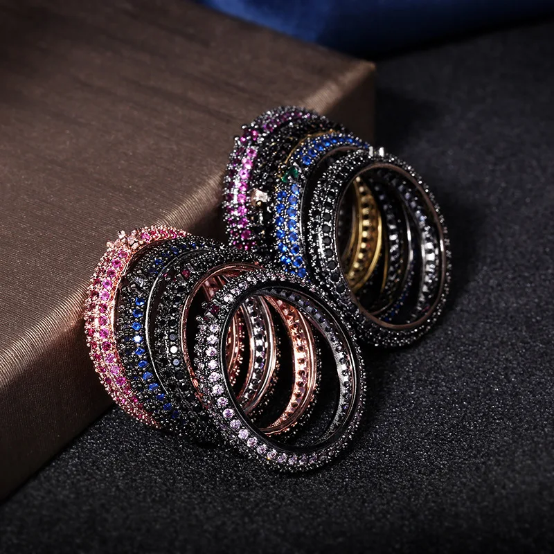 Кольцо женское из серебра кольцо из черного золота пробы с разноцветным цирконием