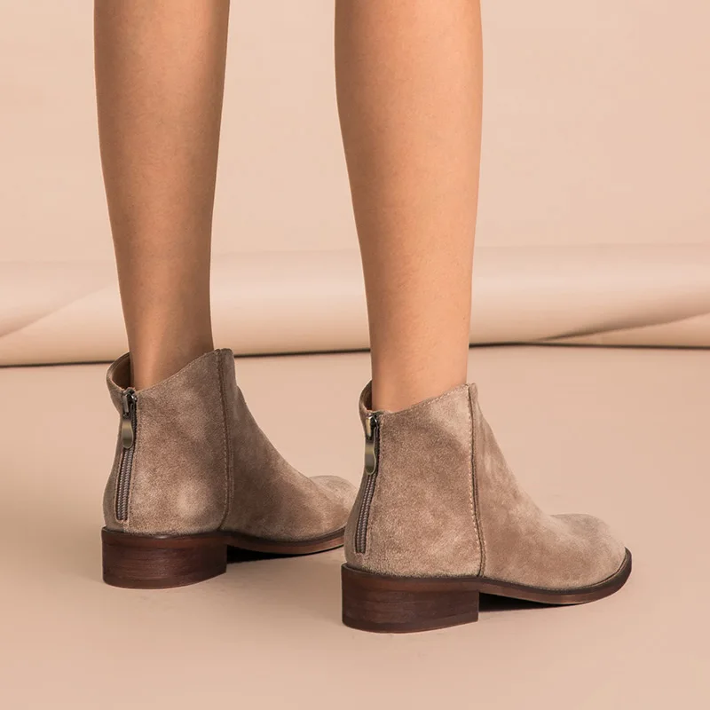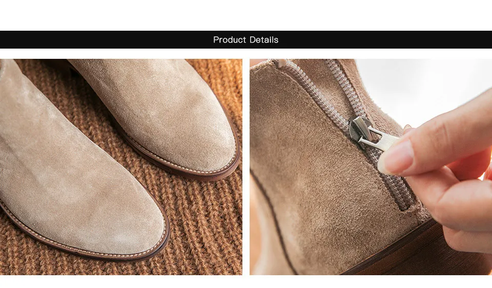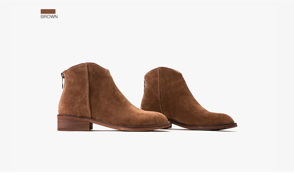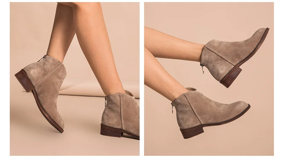 Ботинки женские из натуральной коровьей замши, на молнии, с круглым носком, на плоской подошве, Осень-зима, 03274