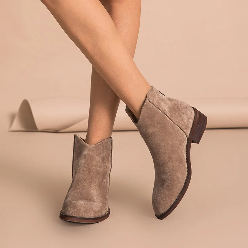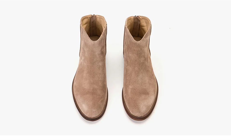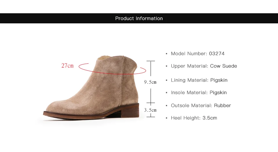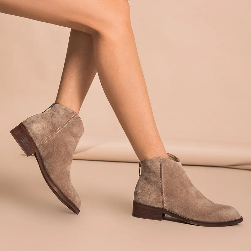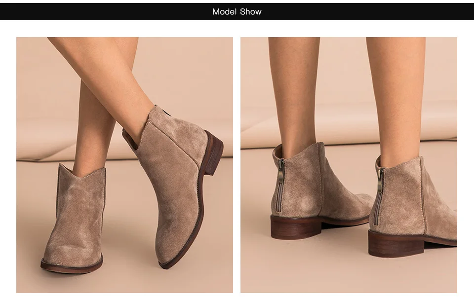 Эти Шикарные ботильоны изготовлены из высококачественной коровьей замши. Застежка-молния сзади легче надевать и снимать. V-образный дизайн с высоким верхом делает ваши ноги более стройными. Резиновая подошва на Плоском Каблуке также удобна для прогулок. Для осени и ранней зимы. Все детали товара: 100% натуральная кожа Мягкий и гладкий верх из коровьей замши Дышащая подкладка и стелька из свиной кожи Нескользящая резиновая подошва на Плоском Каблуке До щиколотки Практичная молния на каблуке Прямые швы внутри и снаружи V-образные высокие сапоги Ручная работа Доступные цвета: коричневый, абрикосовый Обувь с коробкой
