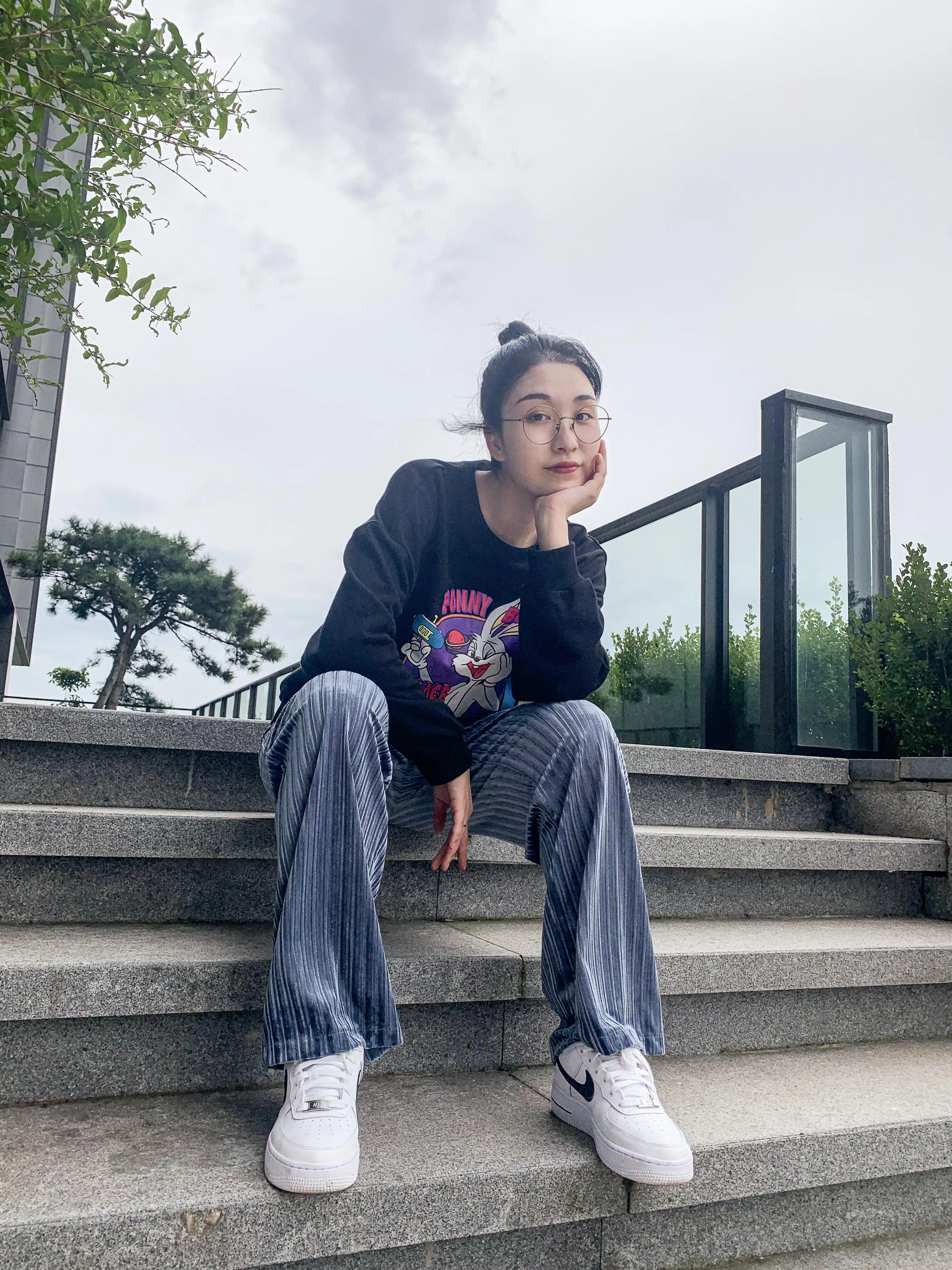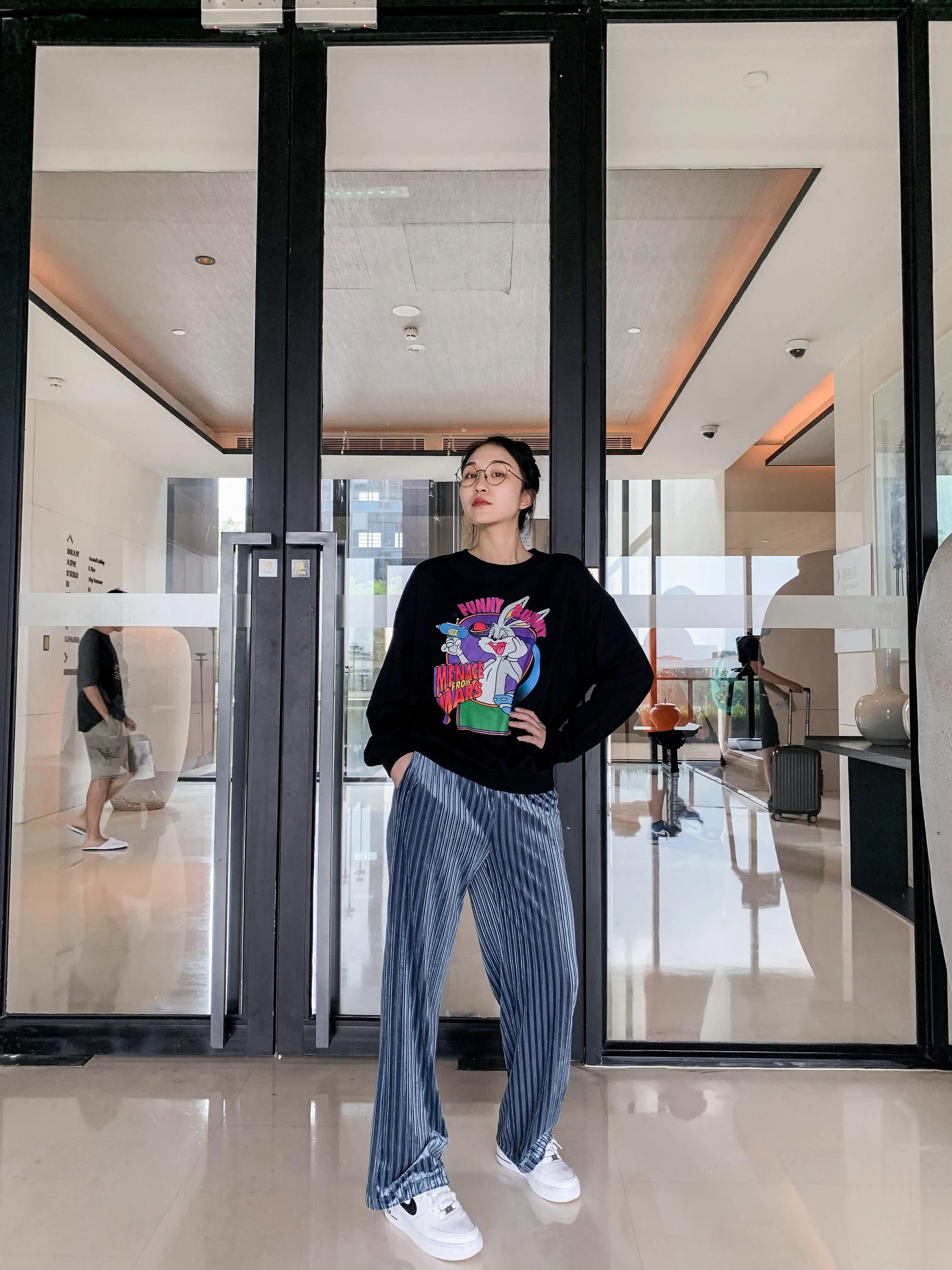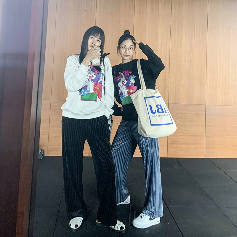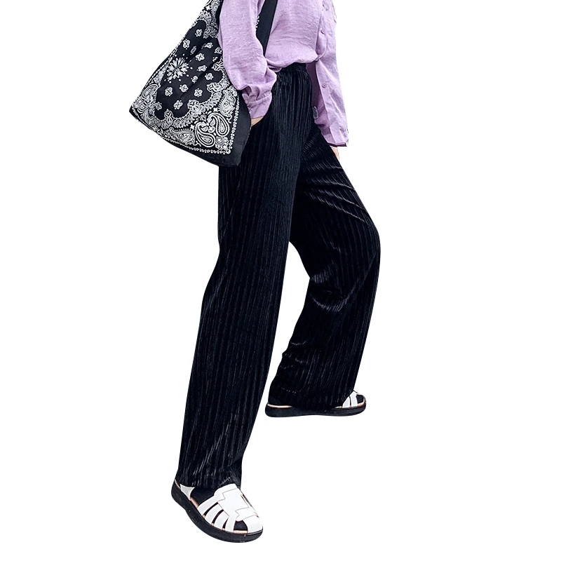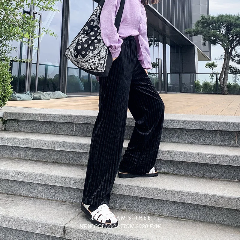 ELFSACKчерные однотонные минималистичные повседневные женские широкие брюки; Осень 2020; Цвет эльф, синий; С высокой талией; Корейская женская повседневная обувь