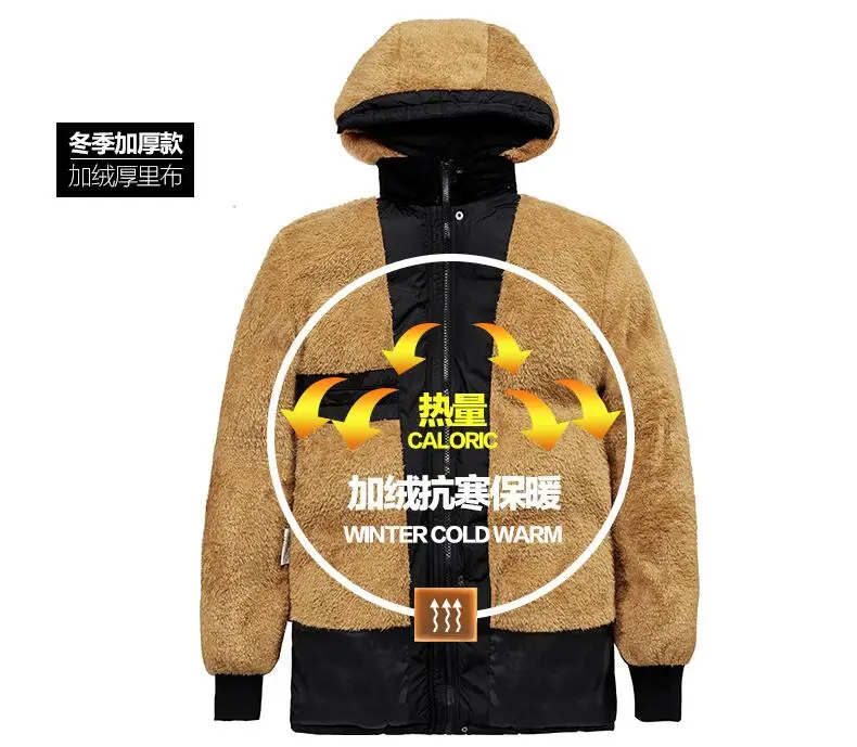 Мужская зимняя куртка, теплая флисовая Повседневная Верхняя одежда ...