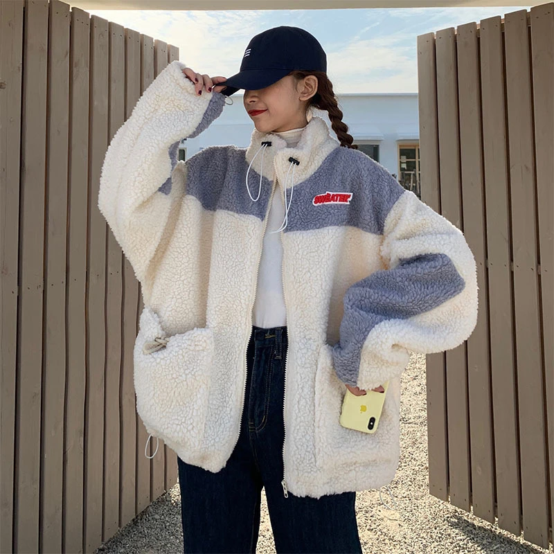 Новинка Осень 2020, верхняя одежда, пальто из овчины, повседневная бейсбольная куртка, теплая Женская шерстяная куртка Parker в стиле пэчворк, большие размеры, зима