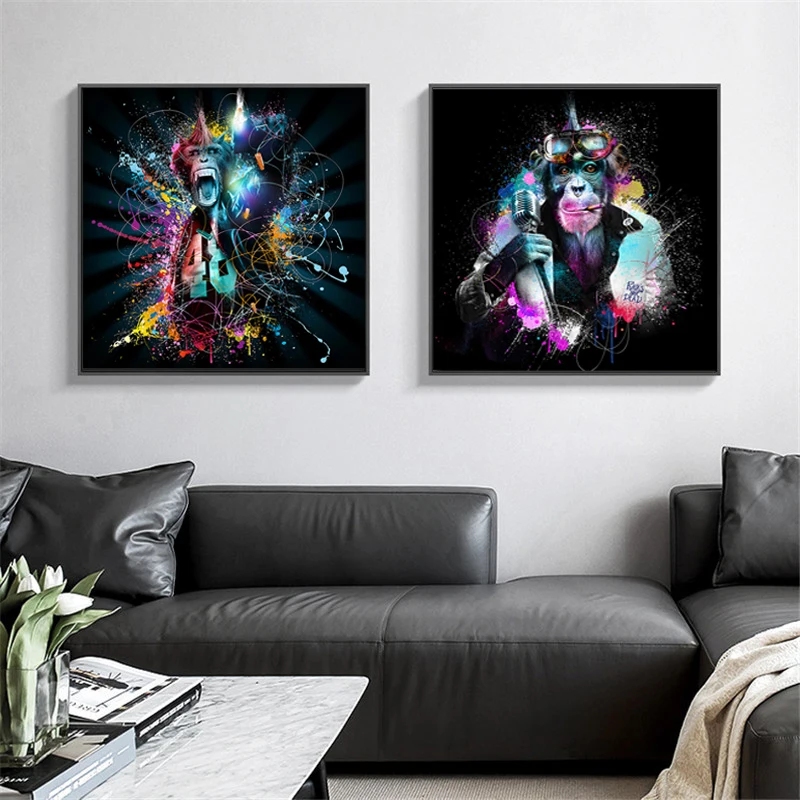 Абстрактные картины, смеющиеся обезьяны, граффити, холст, плакаты и...