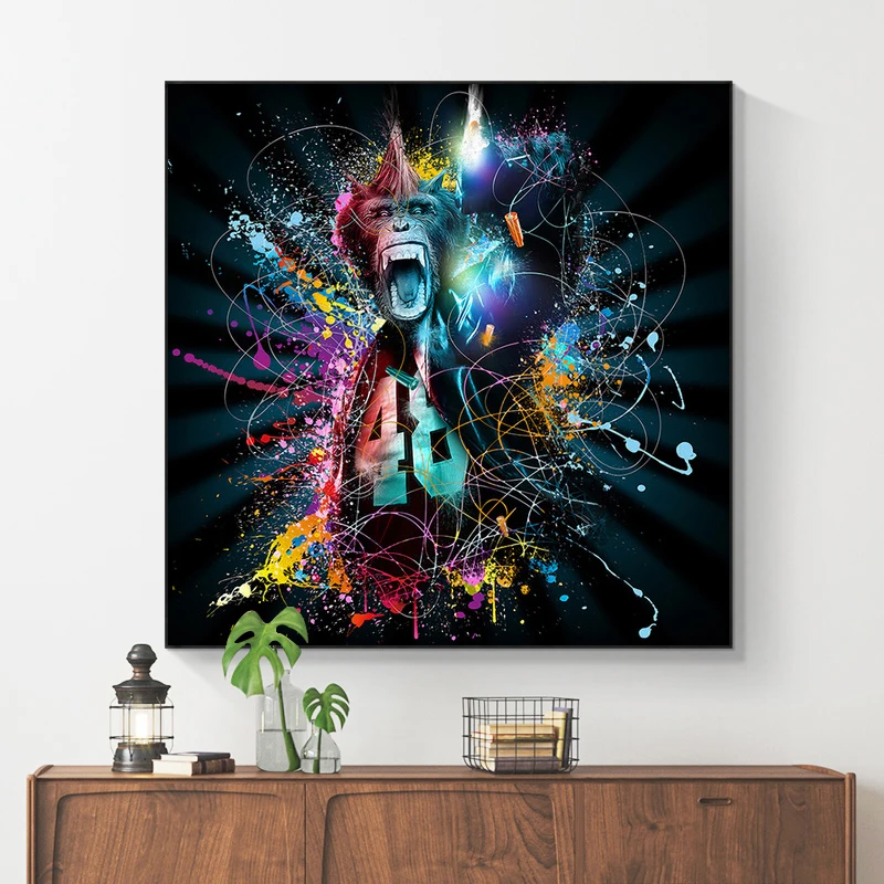 Граффити, музыка, уличная поп-арт, Горилла, обезьяна, холст, настенные плакаты и принты, Настенная картина для гостиной
