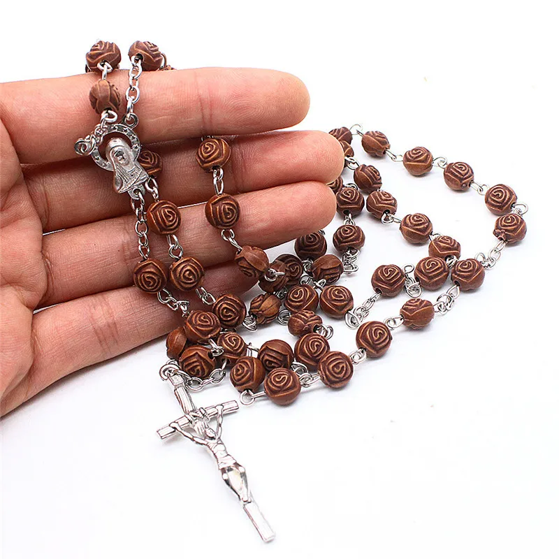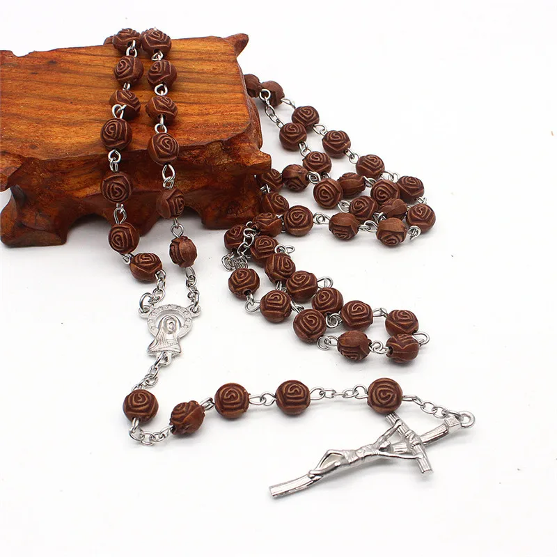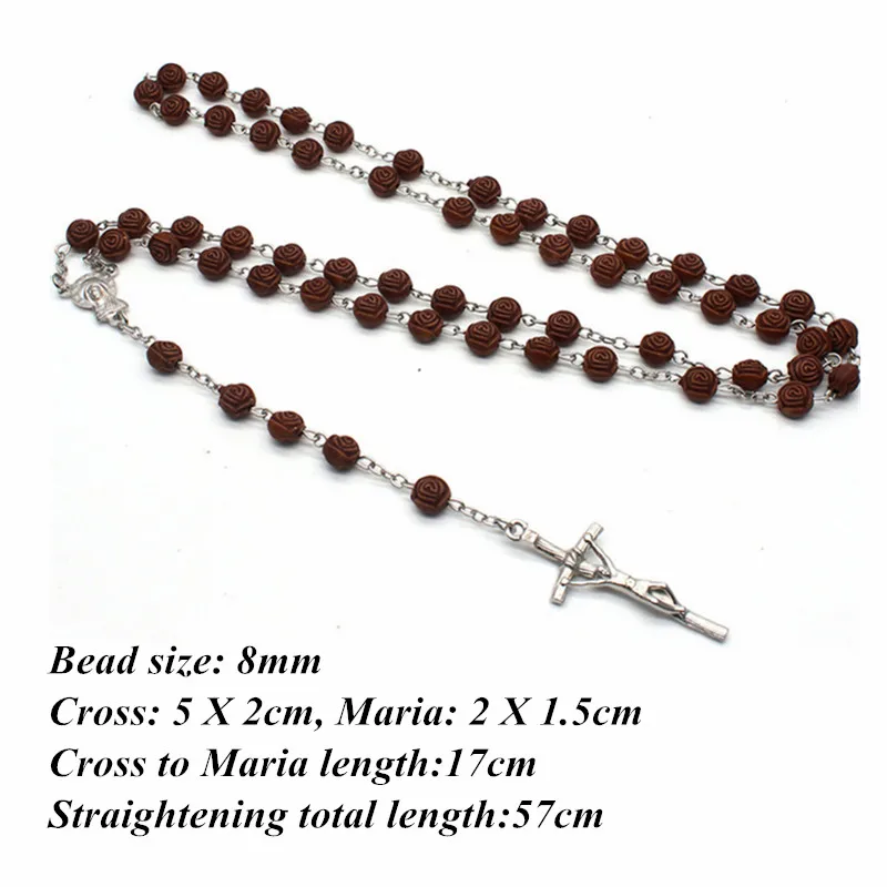 Женское винтажное ожерелье с розами диаметром 8 мм, молитвенные кре...