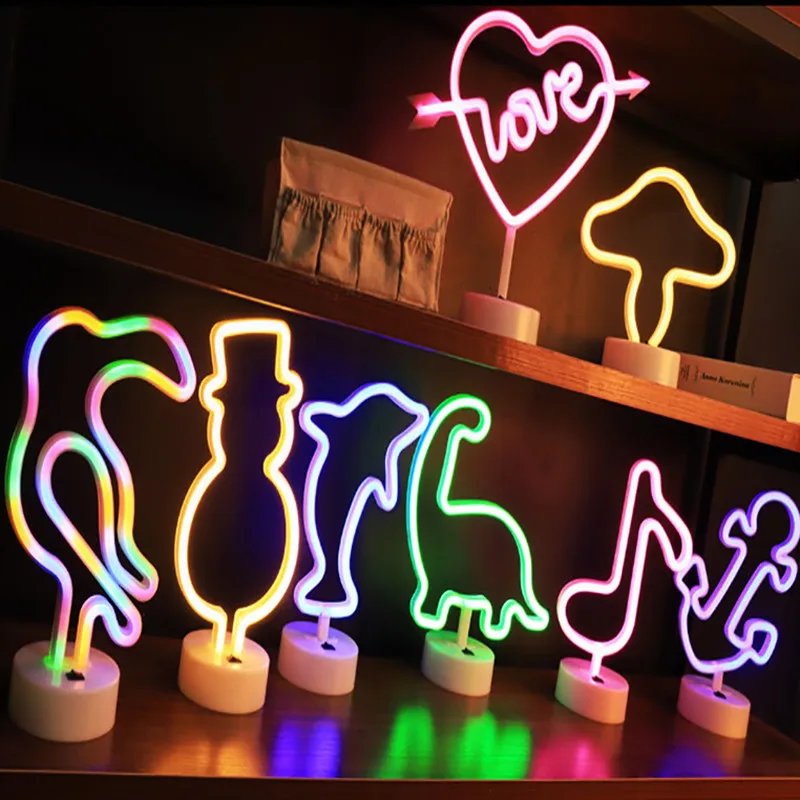 Светодиодный неоновый светильник кролик Снеговик гриб знак неоновая лампа для рождества вечеринки свадьбы спальни домашний декор ночник USBбатарея