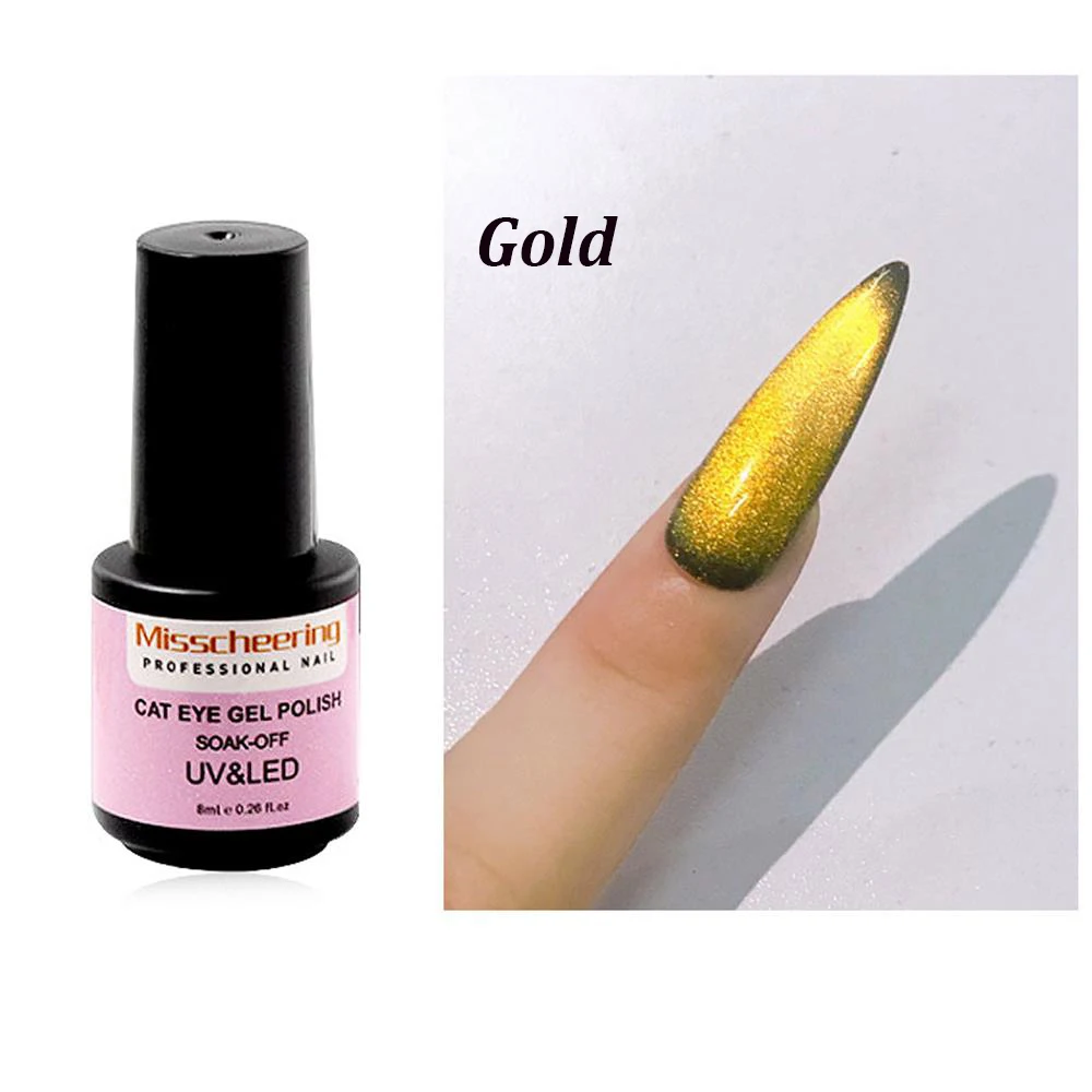100% new retail Type: Smoothies Cat Eye Gel Ingredient: Resin Color: 14 Colors to Choose Color: Brightest Silver/Gold/Colorful NET WT: 8ML Quantity: 1 Pc Package Contents: 1 bottle Cat Eyes Nail Polish Instructions: Special nail polish for nail art stamp and printing colors tools Super quality and only one time can transfer design easily Simple use match with nail plate and nail stamper scraper Dry fast than normal stamping polish How to use: Step 1. Shape the nail with a nail file. Step 2. Lightly buff the surface of nail plate. Step 3. Put the fingers into a soak bowl for 1-2 mins. Step 4. Push the dead skin to the nail edge with a cuticle pusher. Step 5. Remove the dead skin with a cuticle clipper. Step 6. Clean the nail surface and a thin base coat. Step 7. Cure 1-2 mins with UV or LED lamp. Step 8. Apply the colorful gel you want. Step 9. Cure 1-2 mins with UV or LED lamp. Step 10.Apply Cat eyes gel. Step 11.Put the magnet board over the nails for 10-15 seconds. Step 12.Cure 1-2 mins with UV or LED lamp. Step 13.Apply no wipe top coat. Step 14.Cure 1-2 mins with UV or LED lamp. Step 15.Apply cuticle oil.