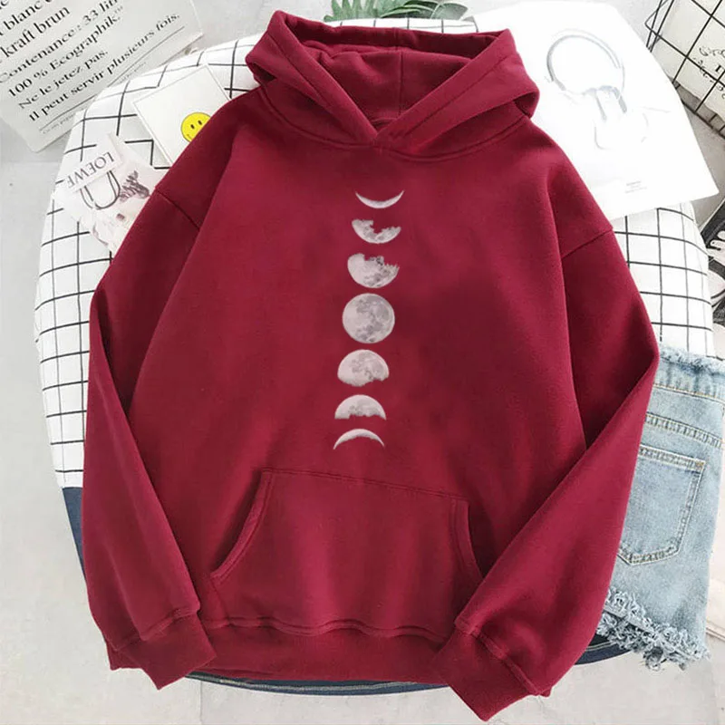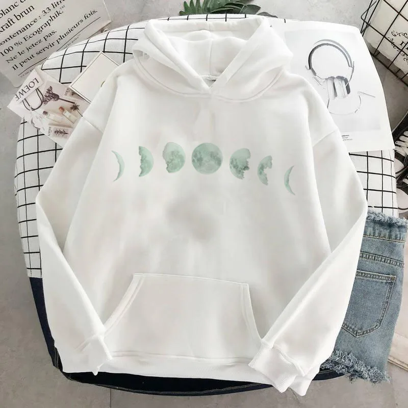 Осень 2020, теплый пуловер в стиле Харадзюку, Женская толстовка с капюшоном и принтом Луны, Женская толстовка фиолетового цвета с длинными рукавами и капюшоном