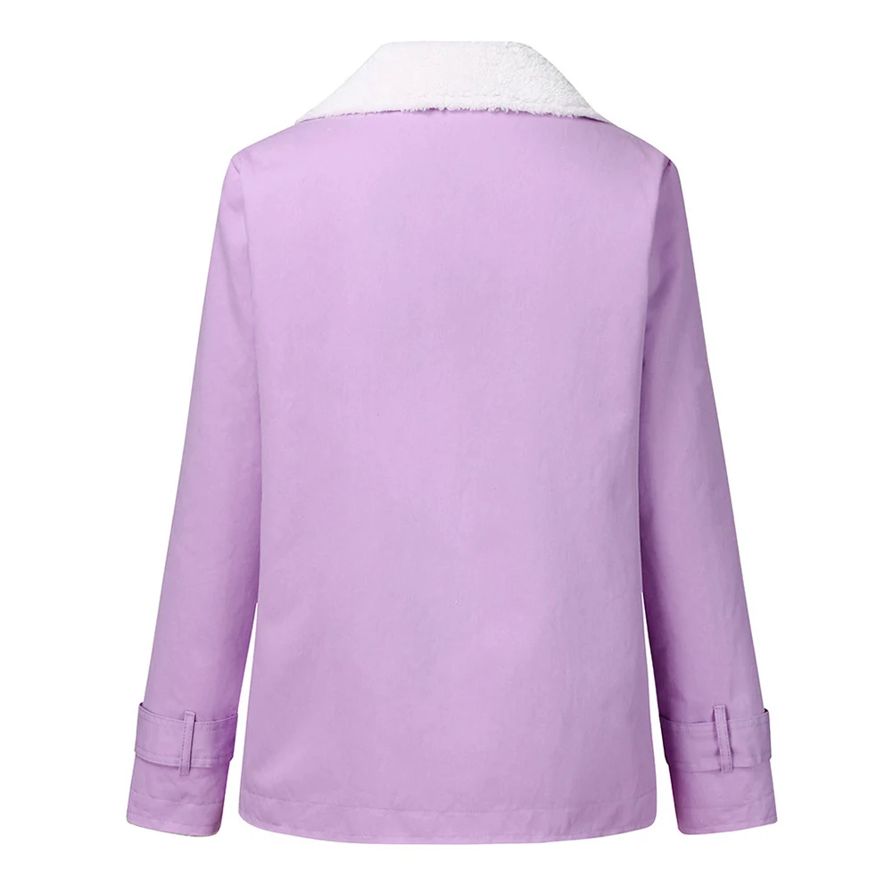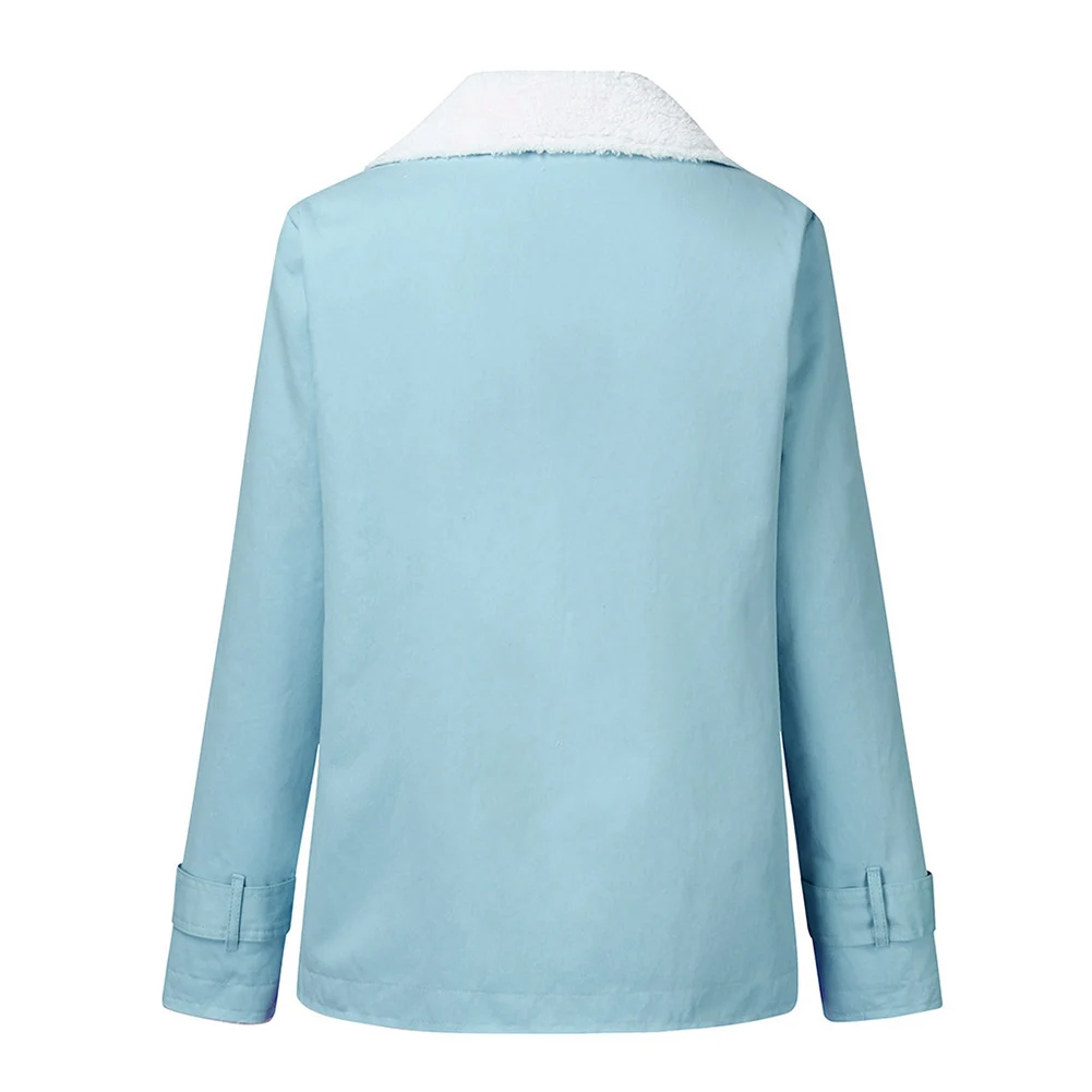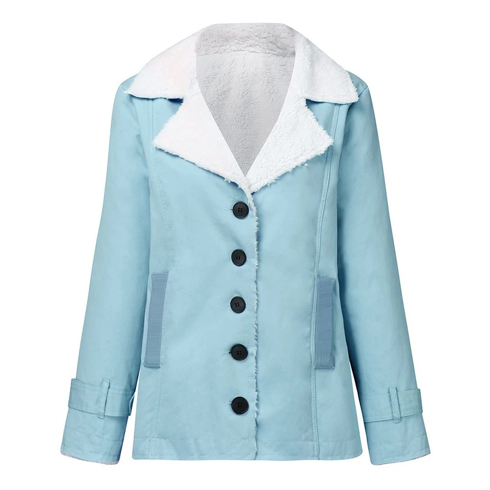 Женская зимняя теплая куртка, меховое однотонное пальто на пуговицах, с отложным воротником, шерстяная плюшевая толстая верхняя одежда, повседневная женская уличная одежда