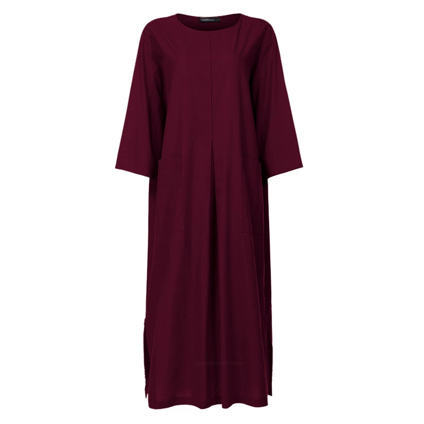 Женское платье с длинным рукавом Eid Mubarak Carftan Arab Dubai, однотонное хлопковое платье средней длины в арабском стиле, мусульманская одежда