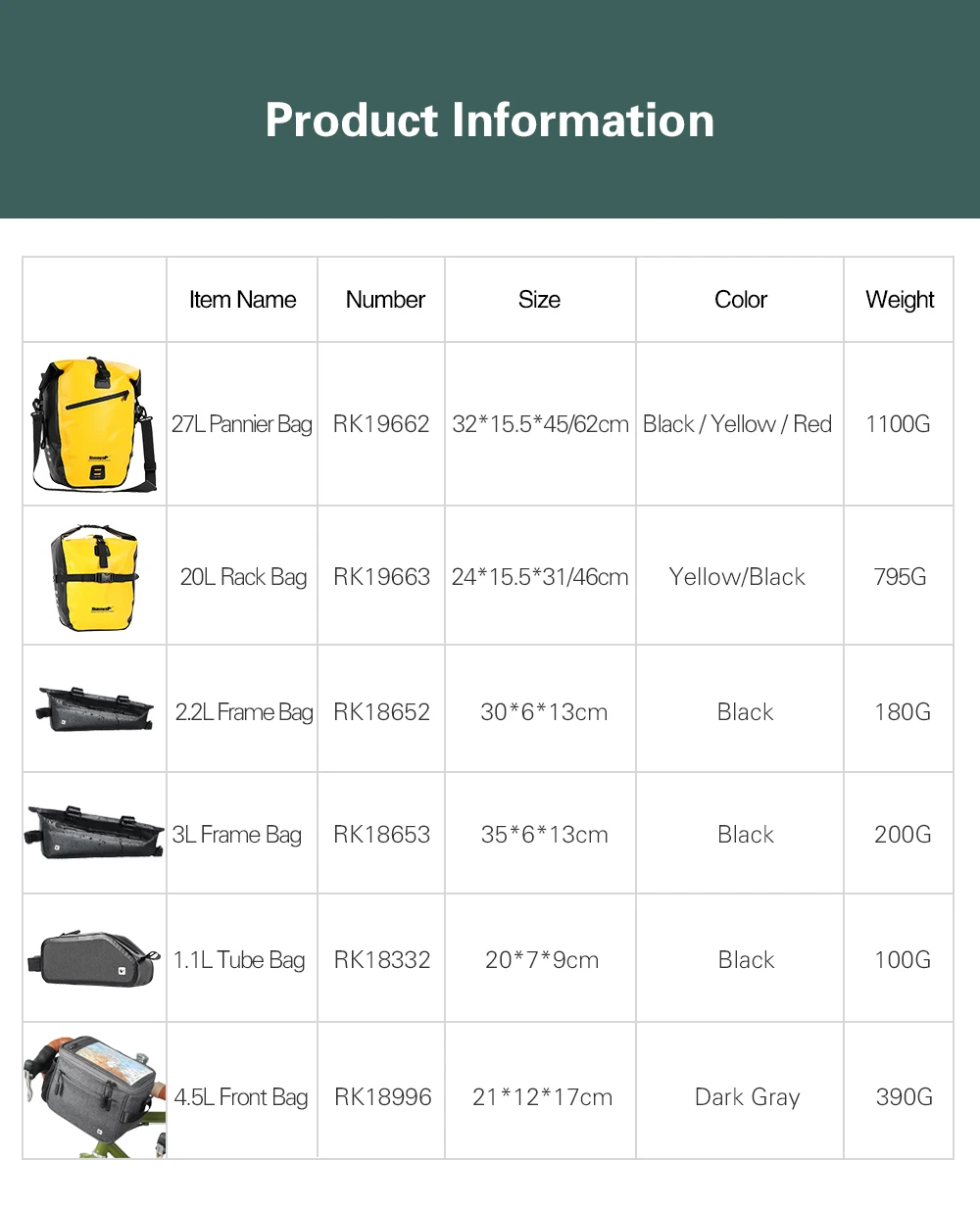 Комплект велосипедных сумок Rhinowalk для поездок на большие рассто...