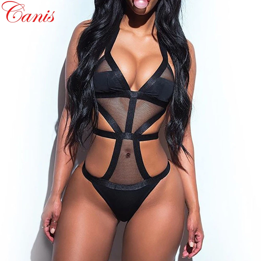 Летние женские сексуальные прозрачные облегающие черные Слитные куп...