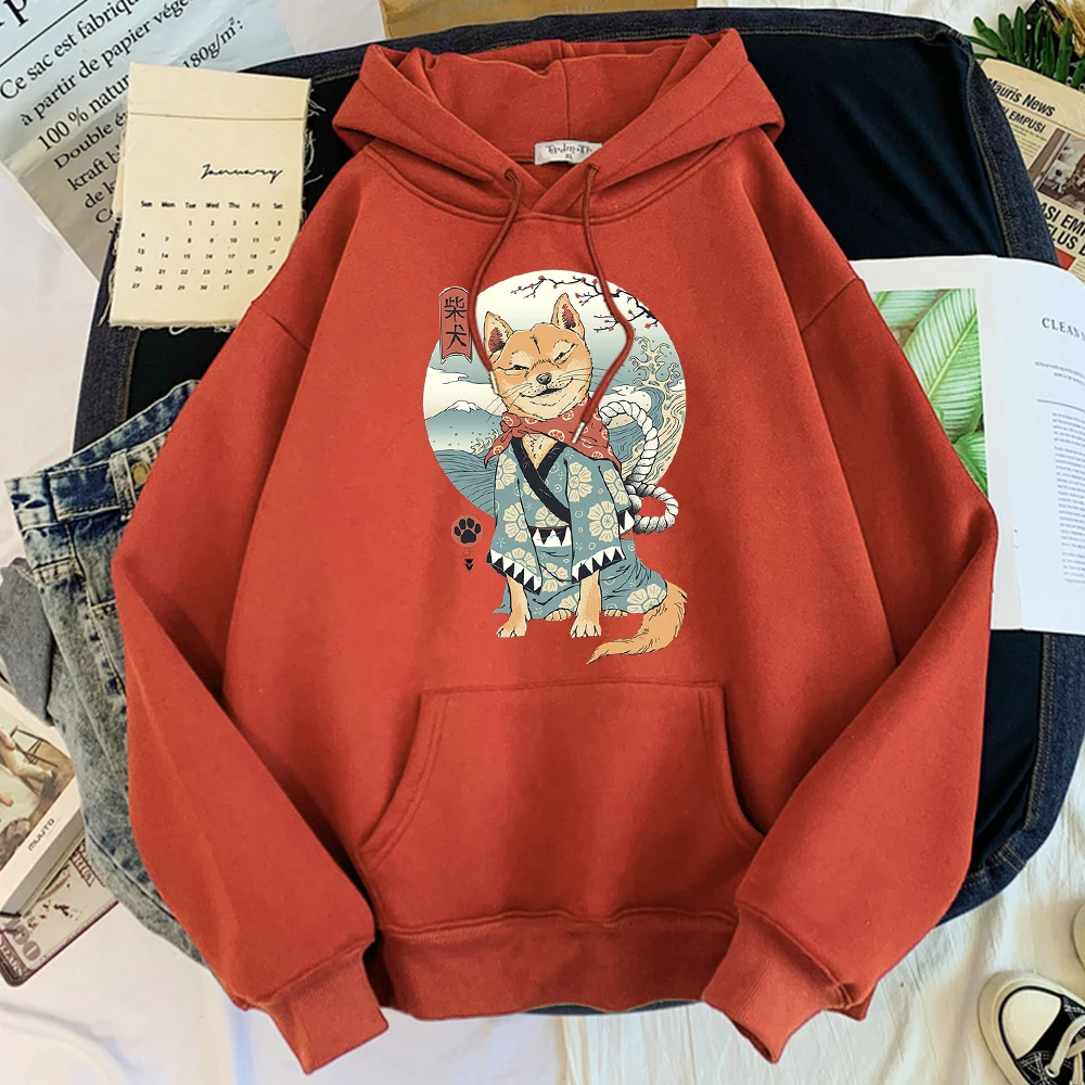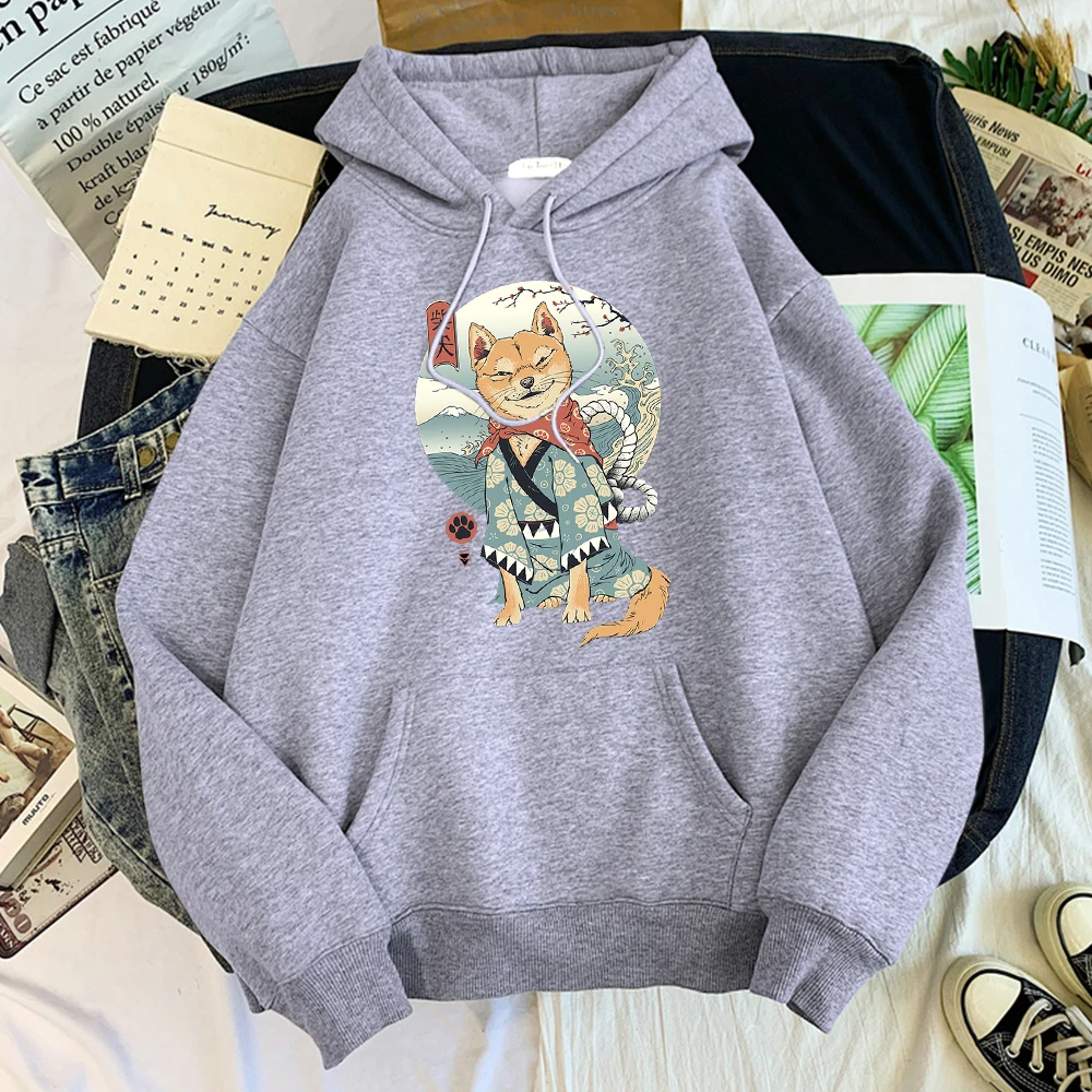 Свитшот мужской оверсайз, милый мультяшный принт Шиба-ину, японский самурайский спортивный костюм для мужчин, тренд худи в уличном стиле, флисовая толстовка