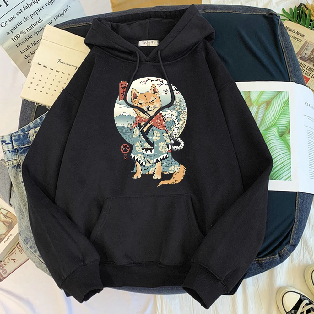 Мужские толстовки с милым мультяшным принтом Сиба-ину, спортивные костюмы с японским Самураем для мужчин, тренд худи в уличном стиле, флисовая Мужская Толстовка Оверсайз