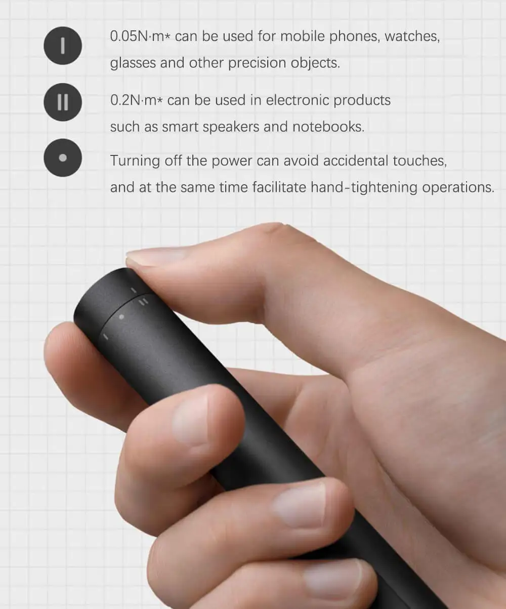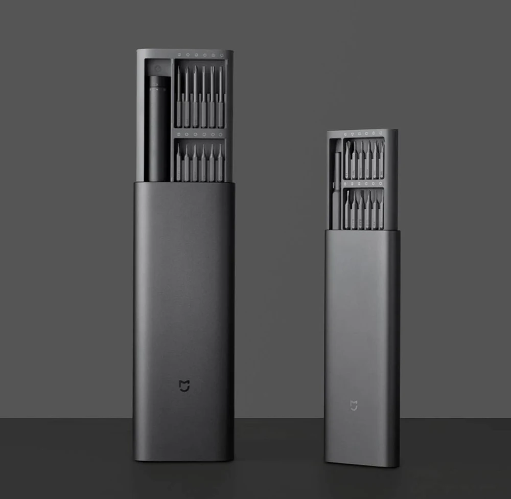 Набор отверток для финишной обработки Mijia получил 5 международных наград в сфере дизайна, iF, Red Dot, Japan, хороший дизайн, идеи и отличный дизайн в Чикаго. Электрическая отвертка Mijia наследует свой дизайн интегрированного пресс-журнала, который может быть выпущен одним щелчком для легкого доступа.* Изображение слева представляет собой электрическую отвертку Mijia для Финишной обработки, а изображение справа-еще один набор отверток Mijia для финишной обработки. Это изображение используется только для иллюстрации разницы в размерах двух изделий.