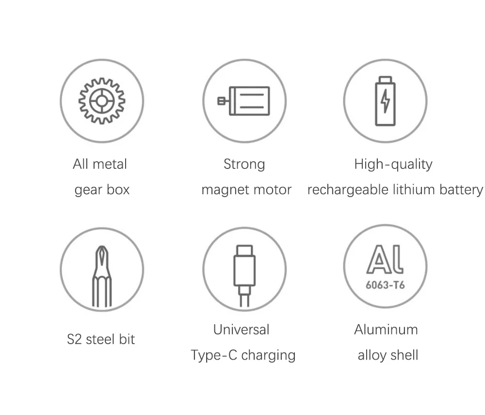 ● Нажатие магнитного поглотителя журнального типа, продолжающее классический дизайн, отмеченный наградами.● Электрическая версия финишной отвертки, улучшает эффективность отделки.● Небольшой размер, длительный срок службы батареи, более 400 прецизионных винтов могут быть поражены полной мощностью.● 24 стальных прецизионных сверла S2 в 9 категориях.● 6 часто используемых бит длиной 45 мм для обработки сложных сцен, таких как глубокие отверстия.● Две передачи точная регулировка крутящего момента для защиты прецизионных винтов.● Соответствует интуитивно понятному дизайну кнопок, мягкому касанию и меньшим усилиям.● Конструкция с низким центром тяжести улучшает чувство контроля, Нескользящая Текстура для лучшего захвата.● Анодированная поверхность не скользит, устойчива к поту и не ржавеет.● Универсальный зарядный интерфейс Type-C, больше насадок для зарядки без проблем.● 13 тестов безопасности батареи + 3 защиты зарядки для более безопасной.