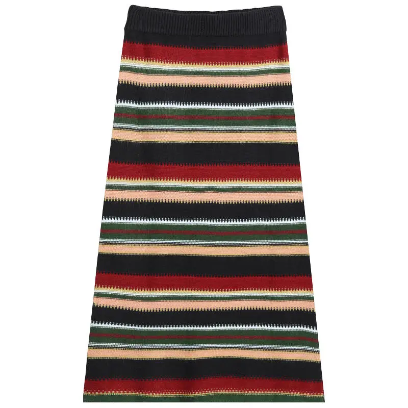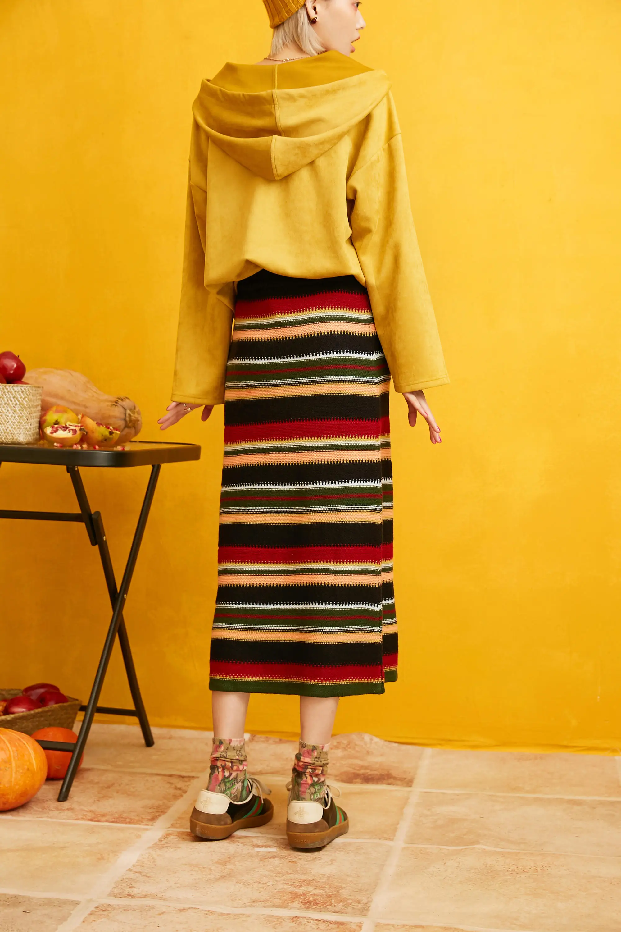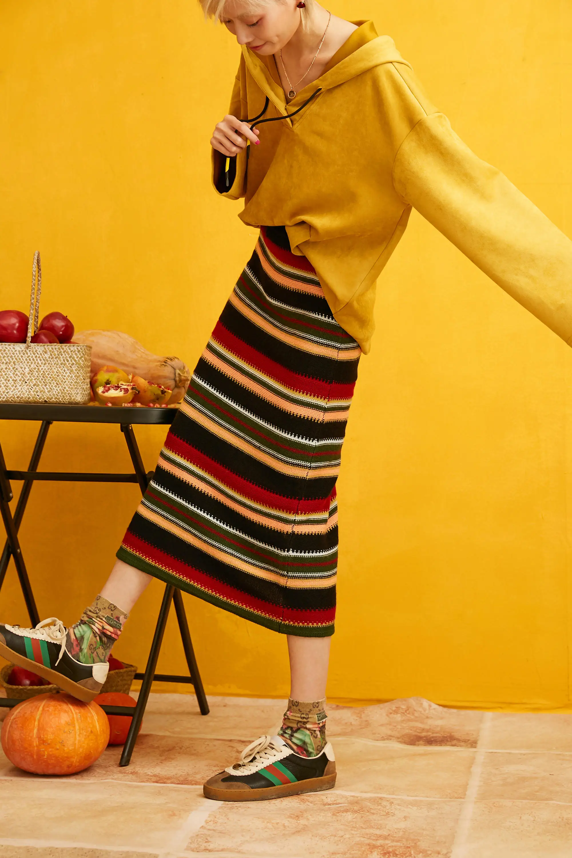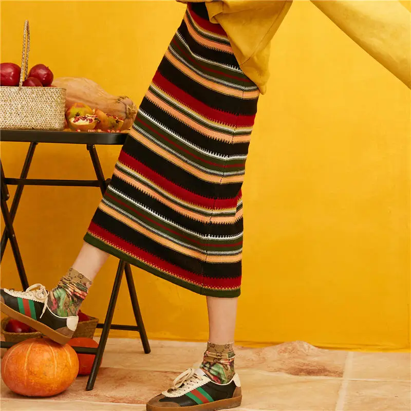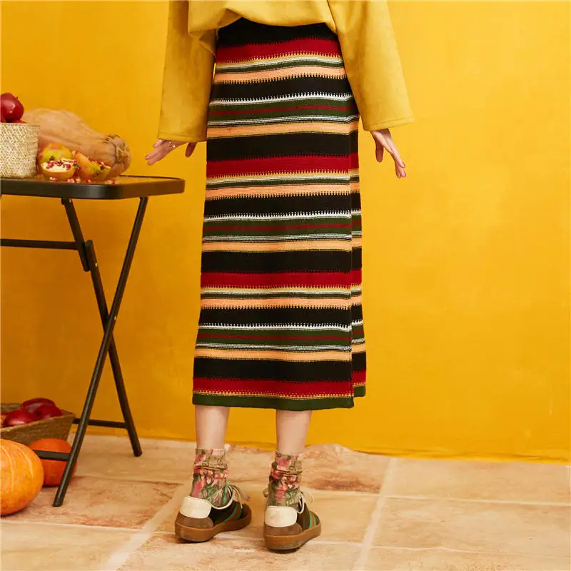 Женская трикотажная юбка миди в радужную полоску ELFSACK, осенняя винтажная обтягивающая юбка с высокой талией в Корейском стиле, 2020