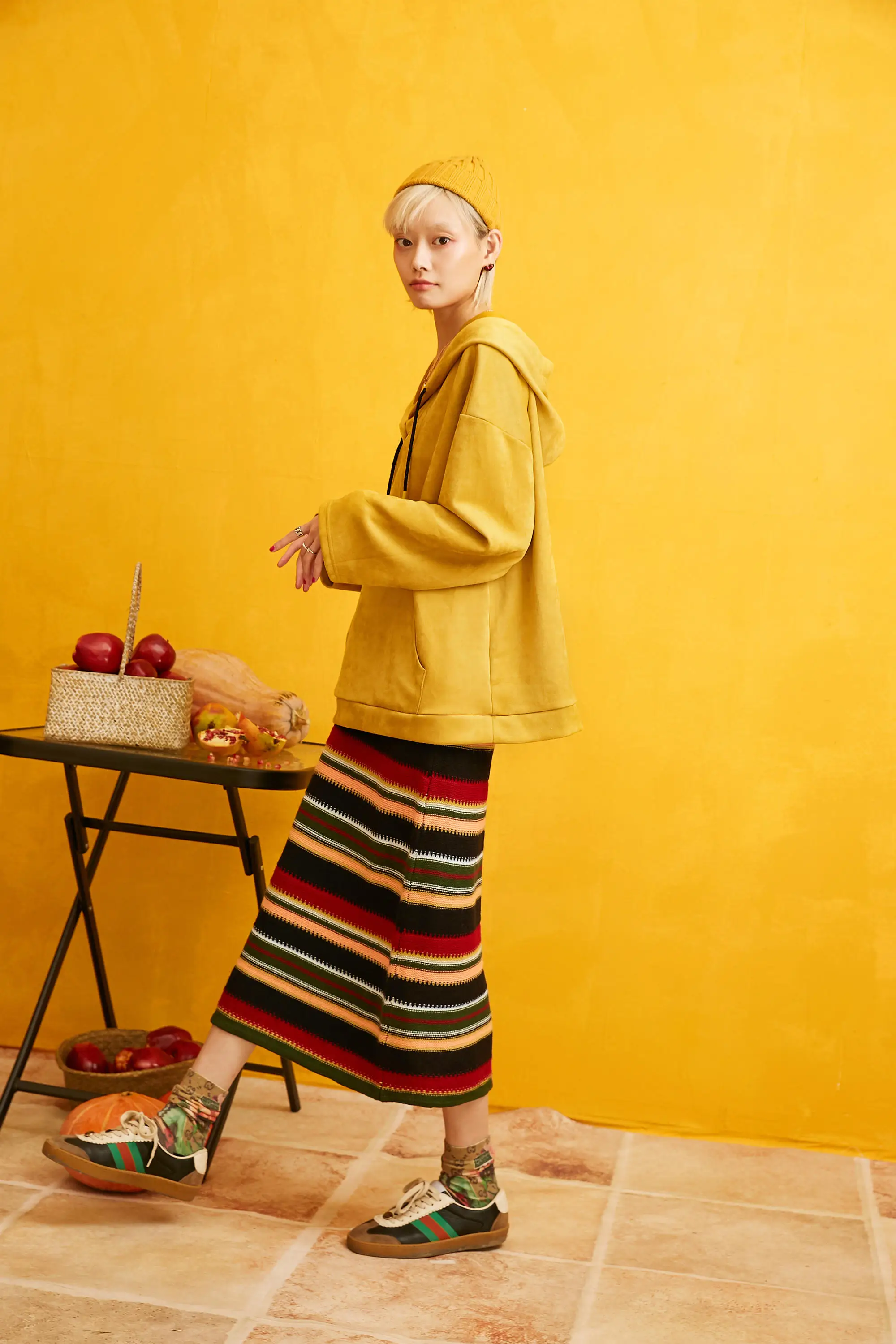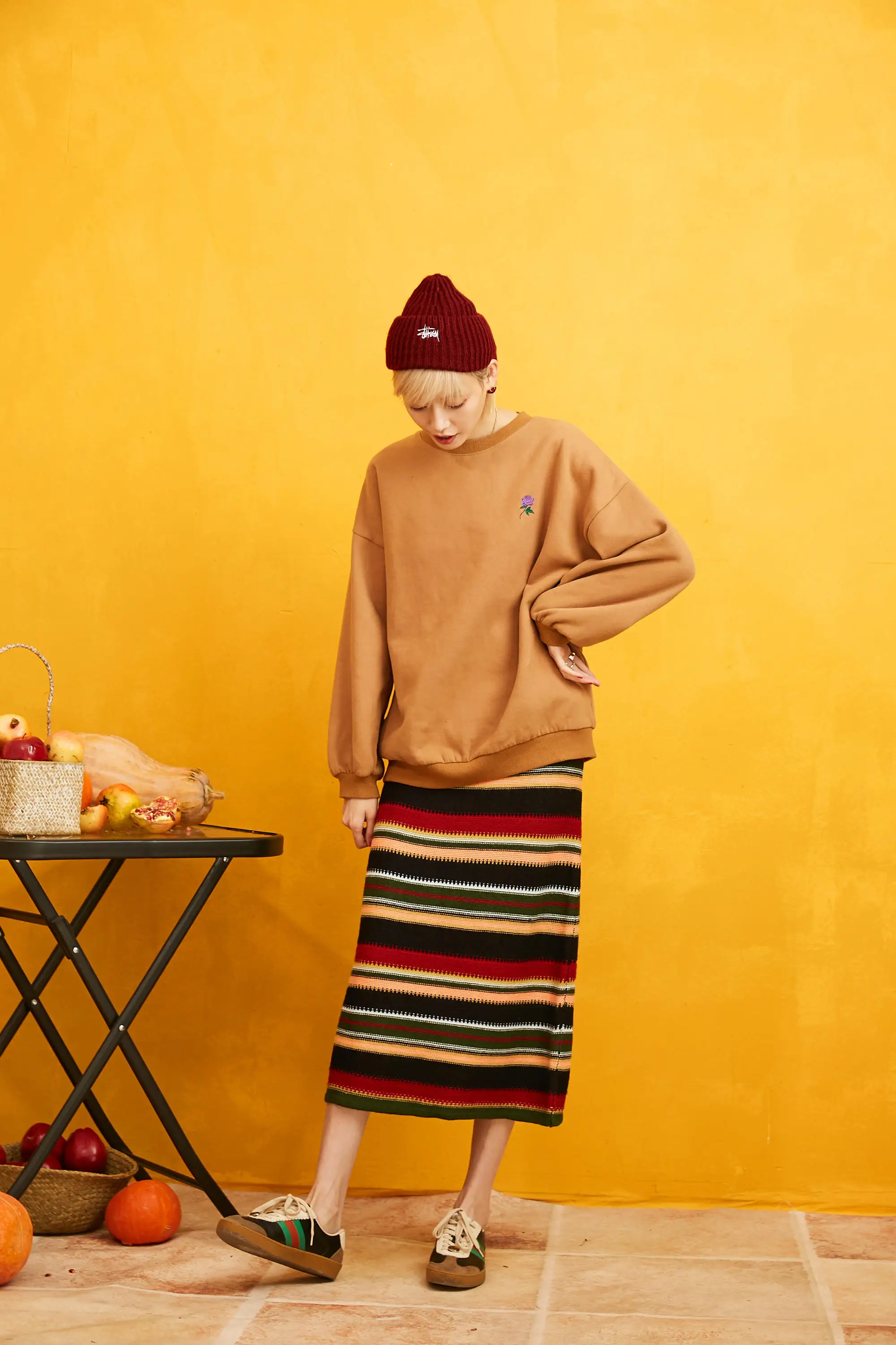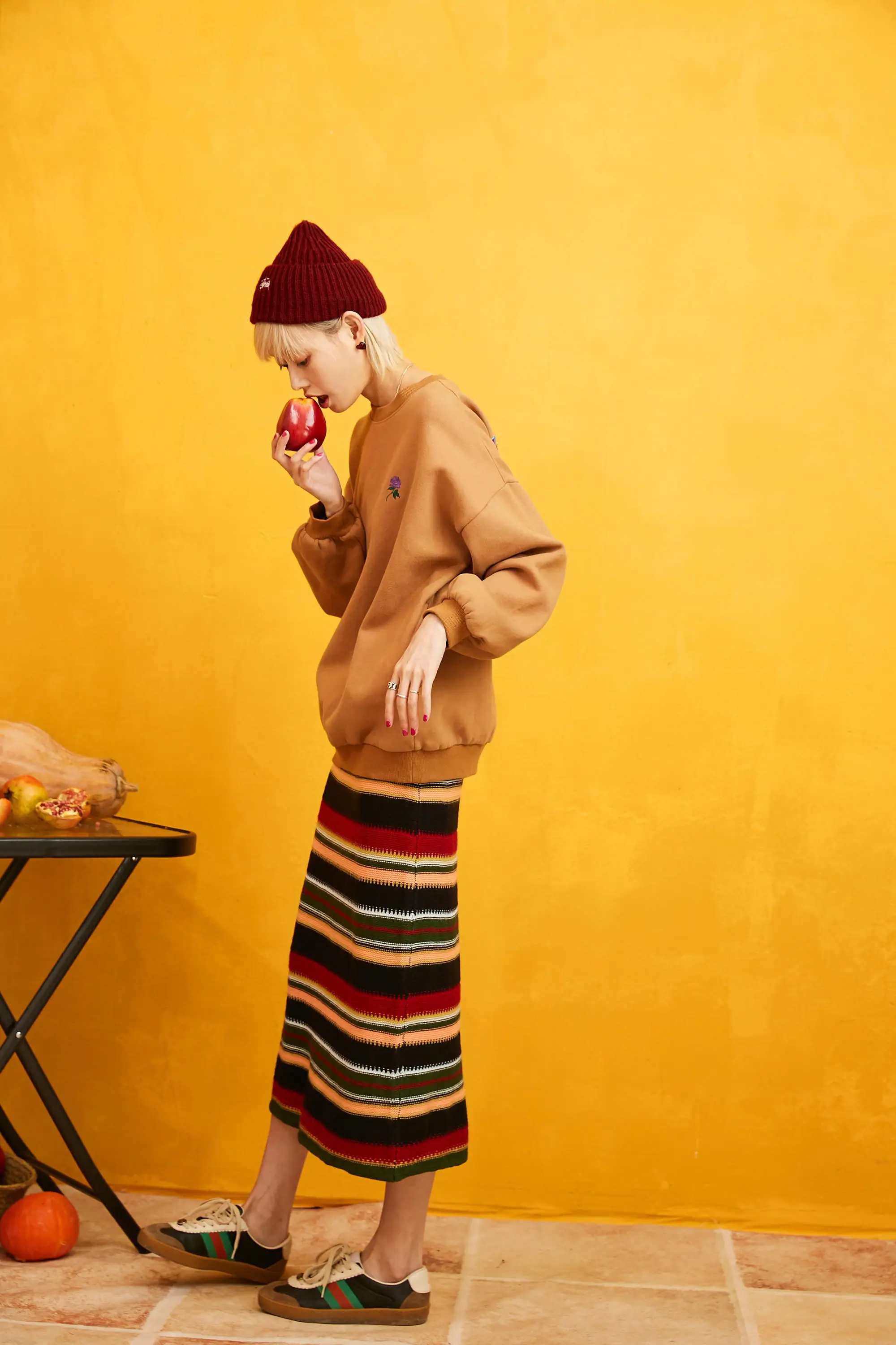 Женская трикотажная юбка миди в радужную полоску ELFSACK, осенняя винтажная обтягивающая юбка с высокой талией в Корейском стиле, 2020