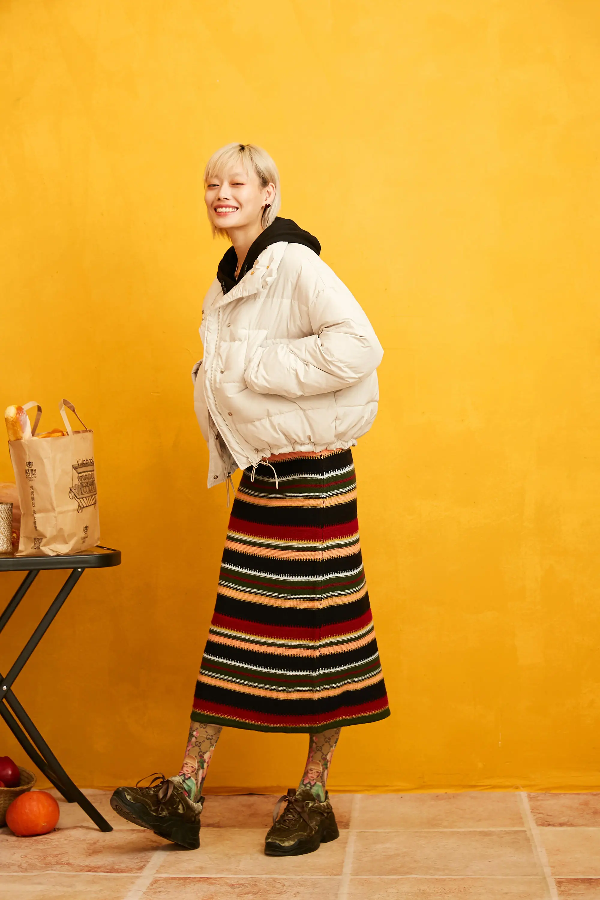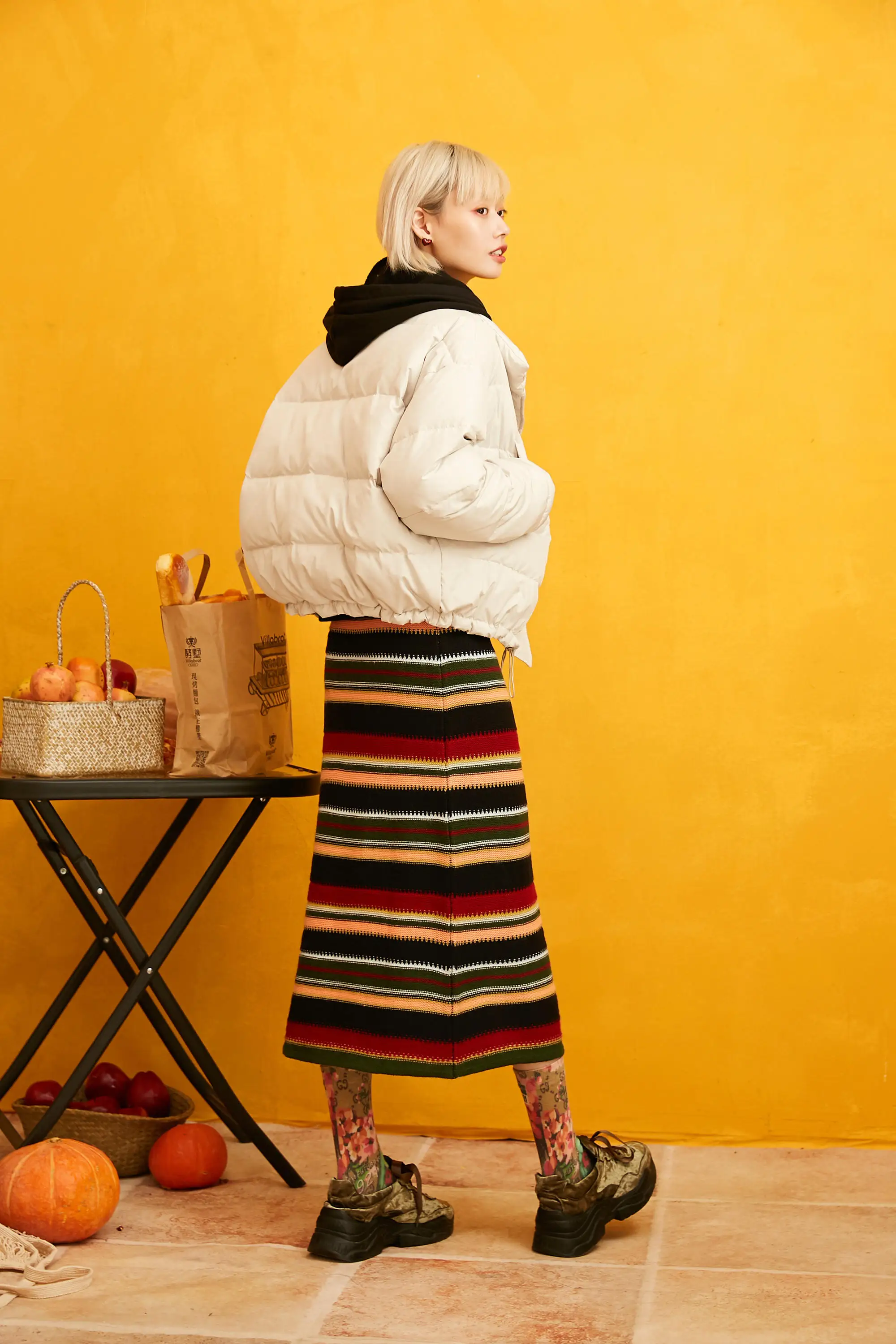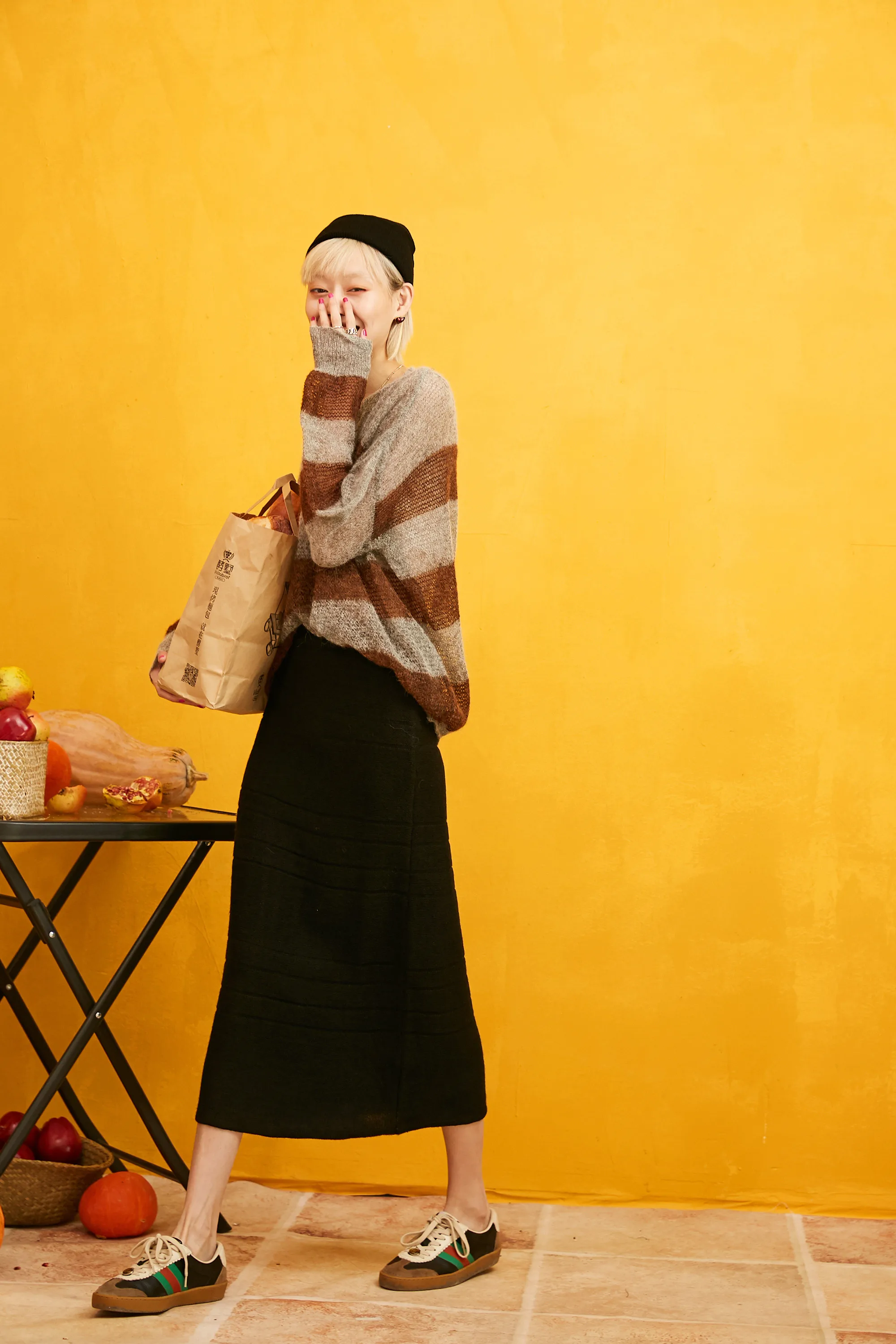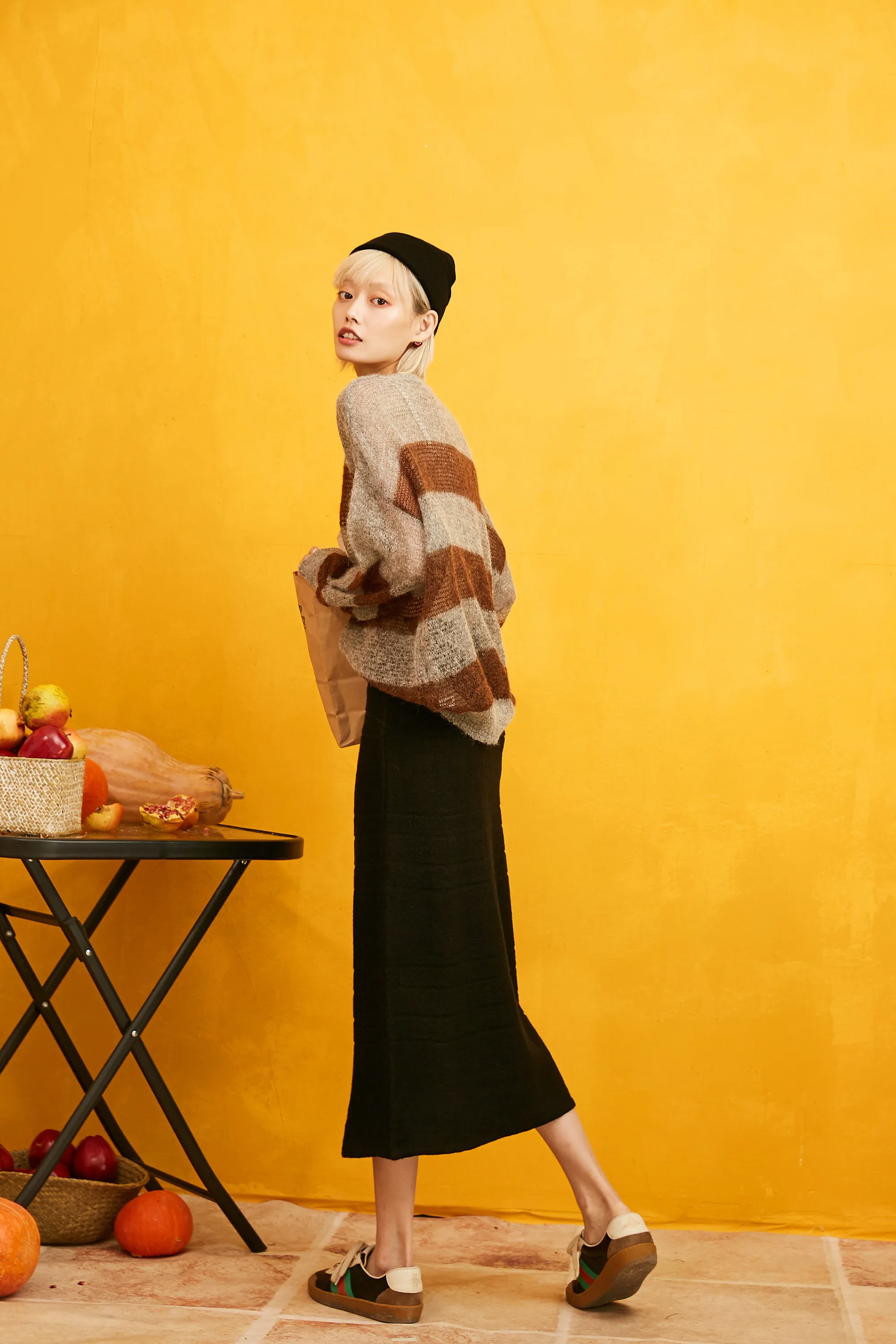 Женская трикотажная юбка миди в радужную полоску ELFSACK, осенняя винтажная обтягивающая юбка с высокой талией в Корейском стиле, 2020
