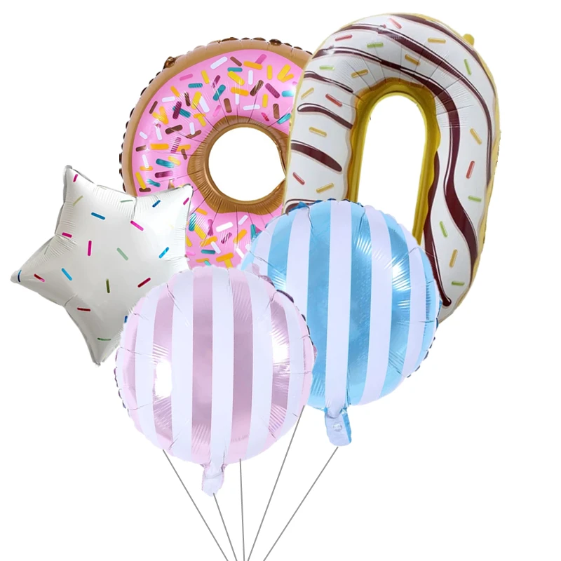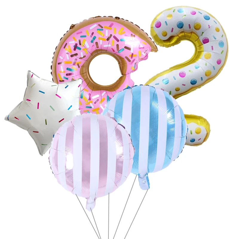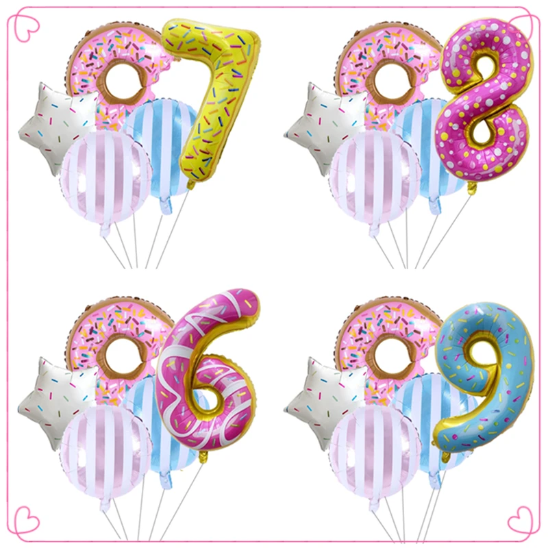 Набор воздушных шаров в виде пончиков, цифровой набор из 5 цифровых шариков 32 дюйма для детского дня рождения, украшения из алюминиевой фольги, конфеты, звезды, шоу малышей