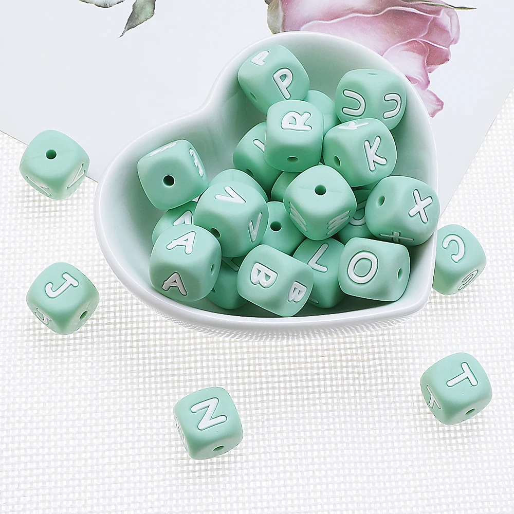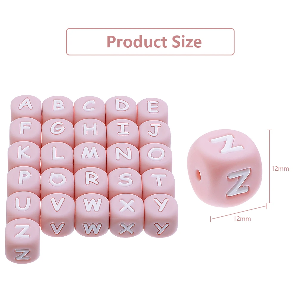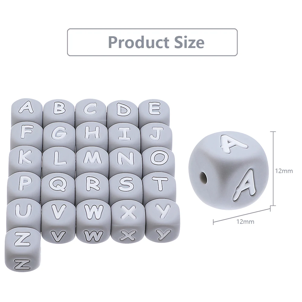 26 шт., все бусины с буквенным принтом, 12 мм, Детские бусины для прорезывания зубов, с надписью на соски, на цепочке, с зажимом, BPA, бесплатная доставка, подарки для детского душа