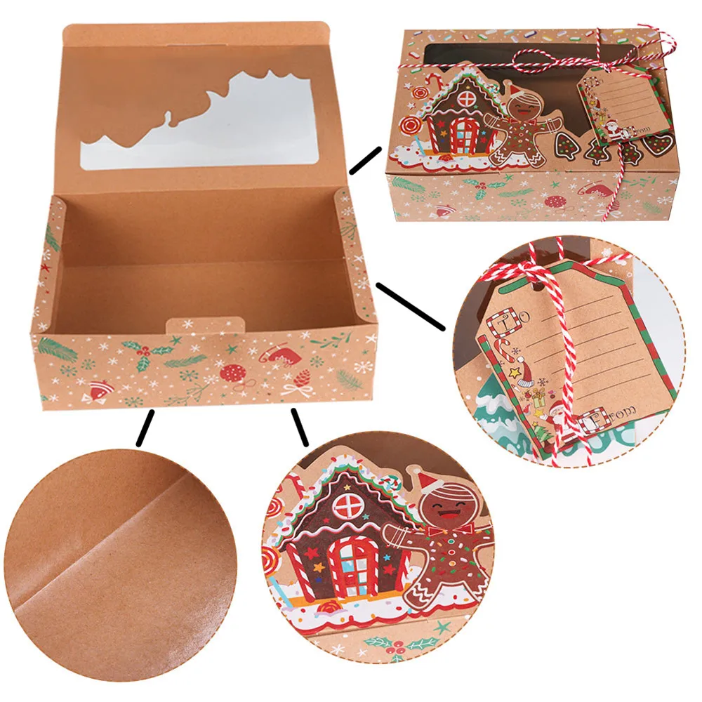 Коробка из крафтовой бумаги большого размера для пирожных, Рождеств...