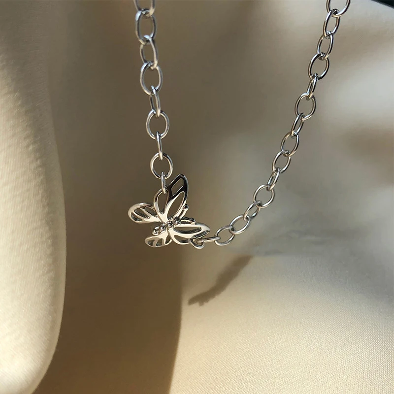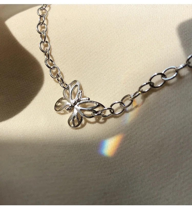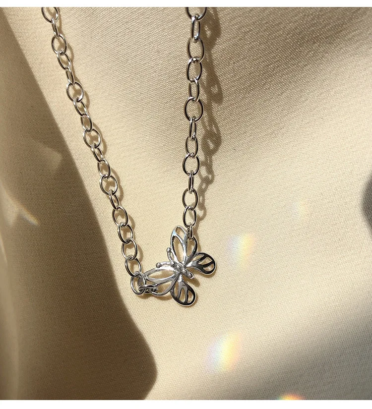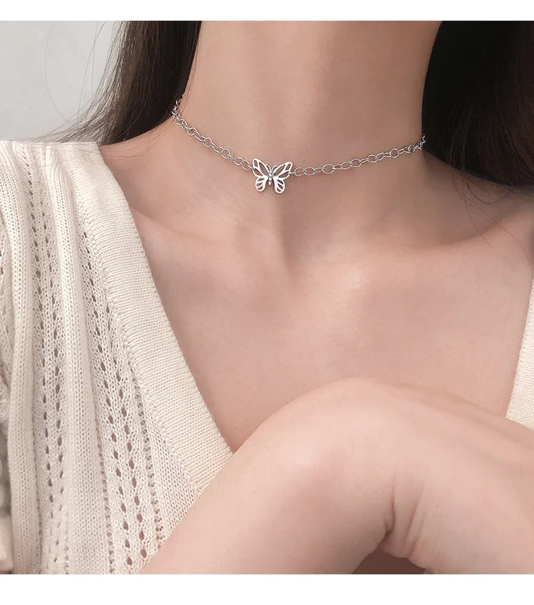 Женское винтажное ожерелье-чокер из стерлингового серебра 925 пробы с ажурной бабочкой, ювелирное украшение для вечевечерние в стиле панк, S-N697