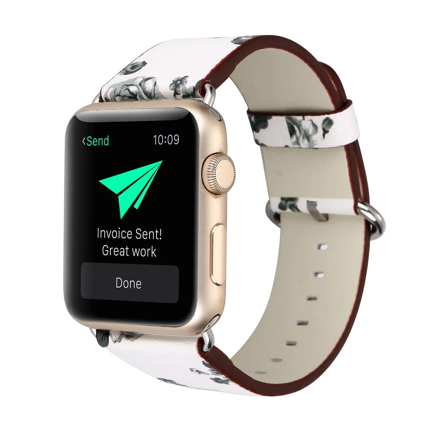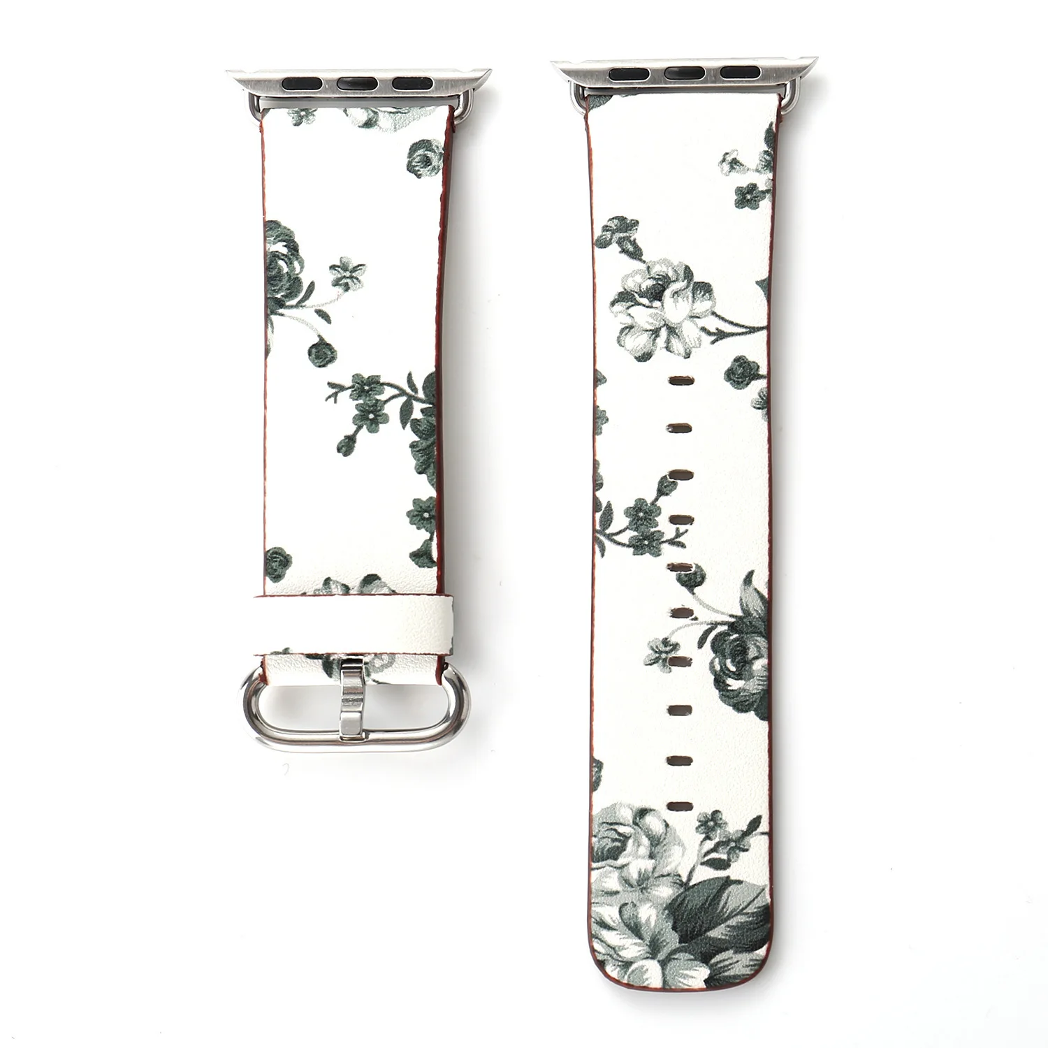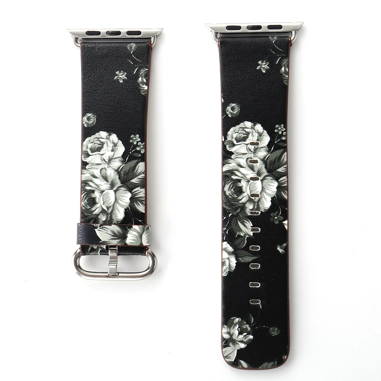Ремешок из натуральной кожи для Apple Watch, браслет с цветочным принт полоса для iwatch 5 4 3 2 1 44 мм 40 мм 38 мм 42 мм