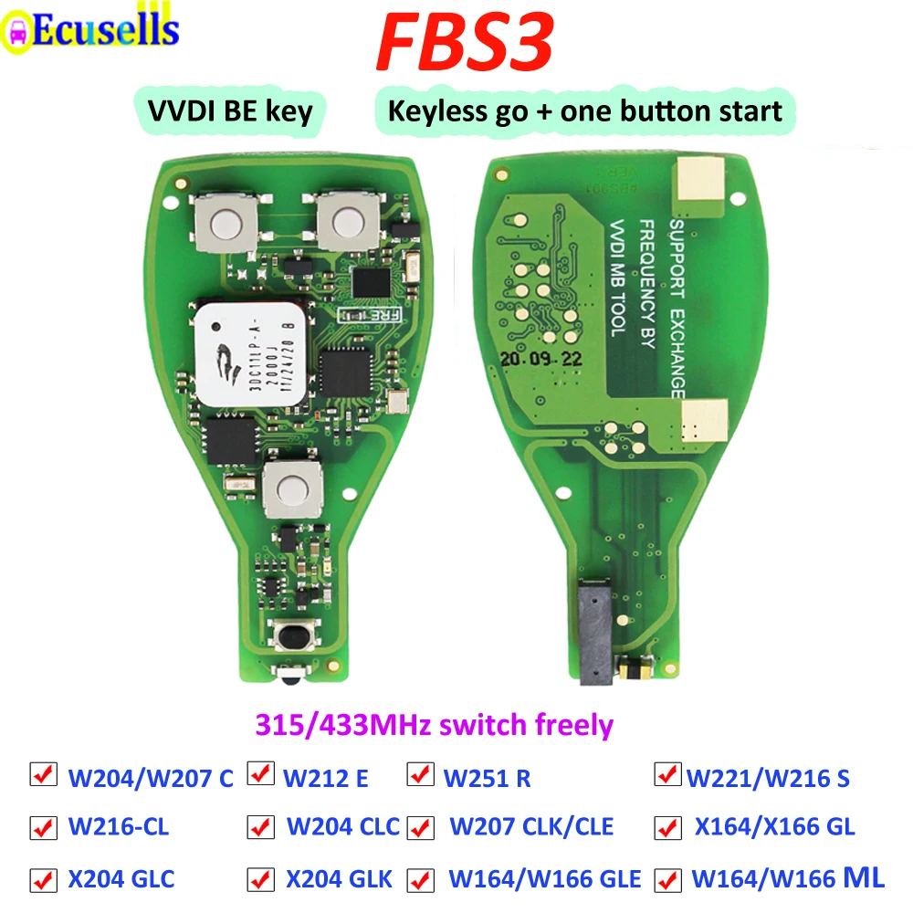 Оригинальный ключ без ключа Go FBS3 VVDI BE, 34 кнопки, 315 МГц, 433 МГц, одна кнопка запуска для Benz W204, W207, W212, W164, W166, W221, X164