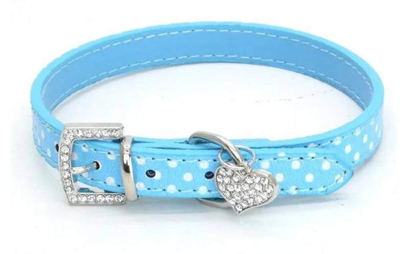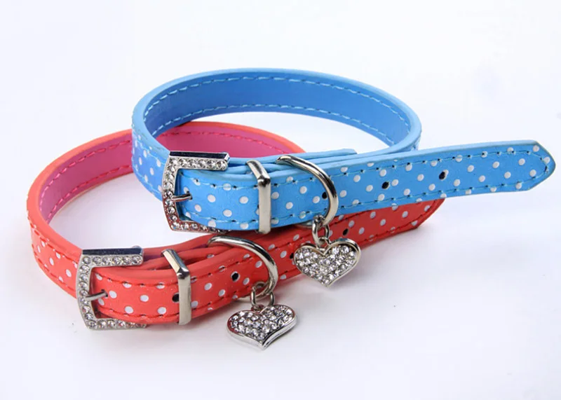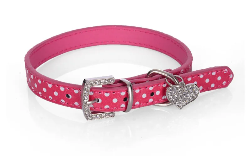 Ошейник с кристаллами в виде сердца для собак, Пряжка для щенков, поводки для собак, ремешок на шею, аксессуары для животных, ожерелье, узор в горошек