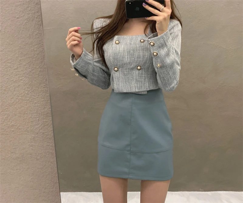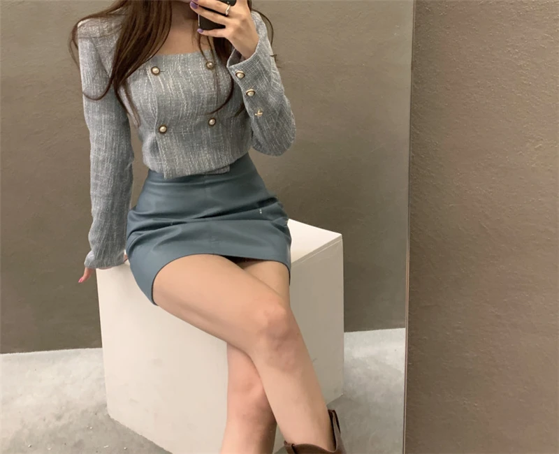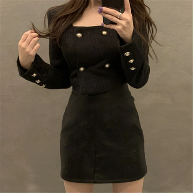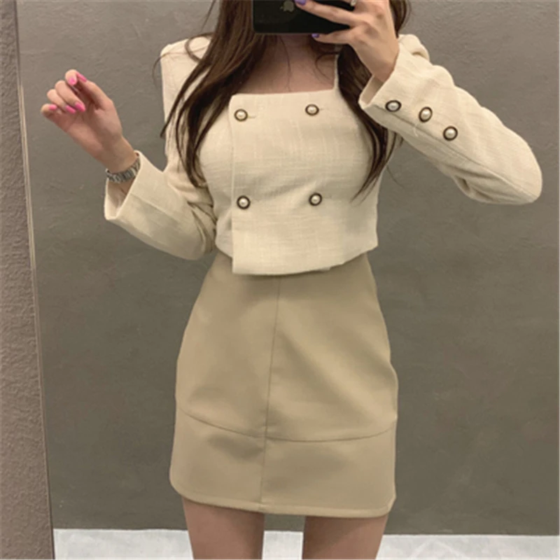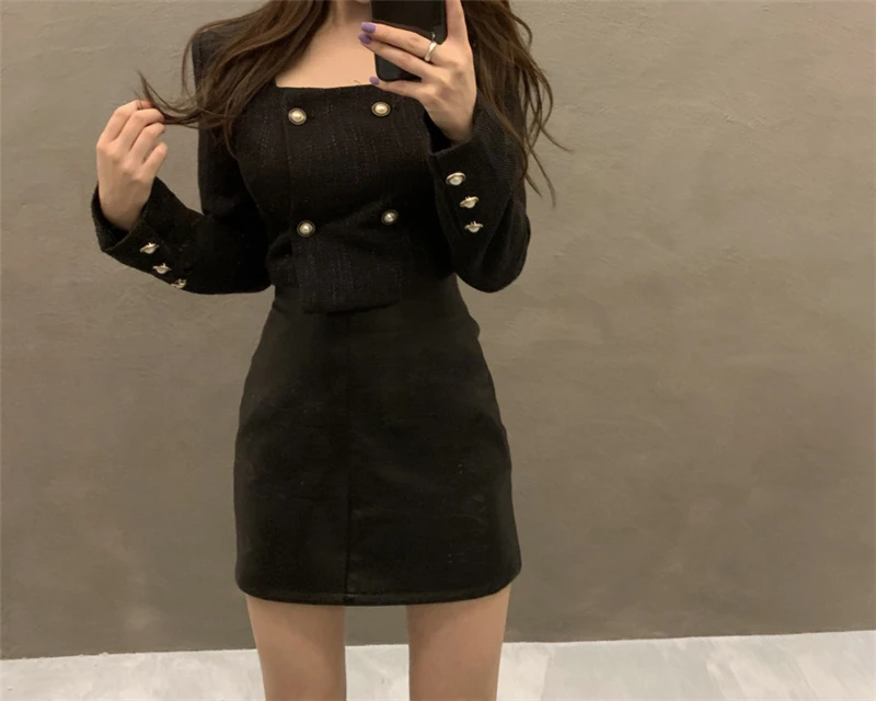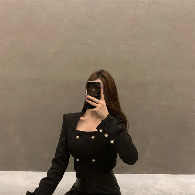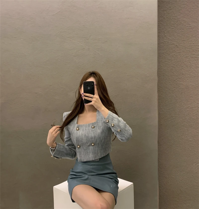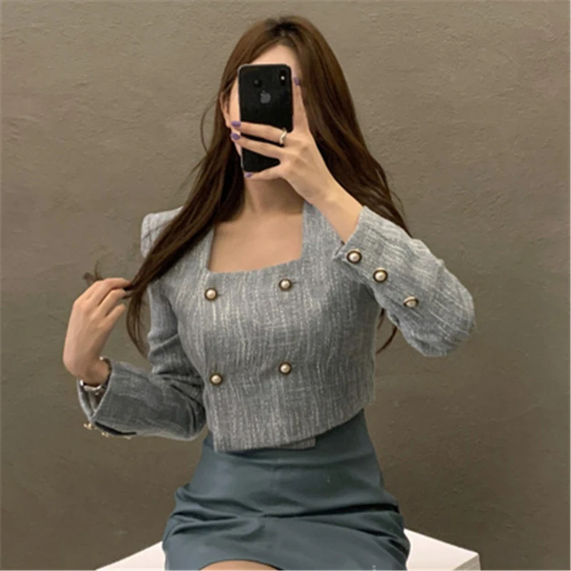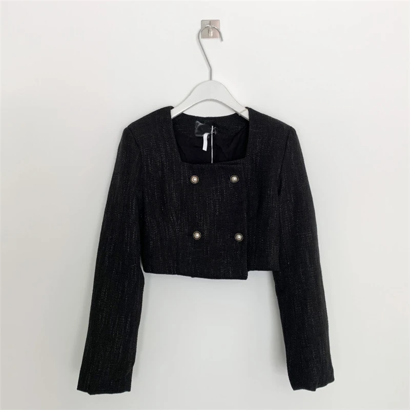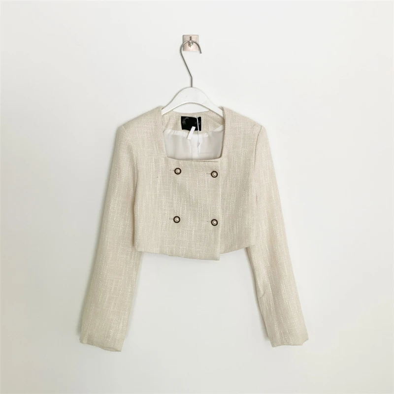 Короткие Для женщин куртки новая узкого кроя пикантные квадратный воротник двубортный Ultra Short Throw женского пальто элегантные, офис-Леди Топы 2020 шик