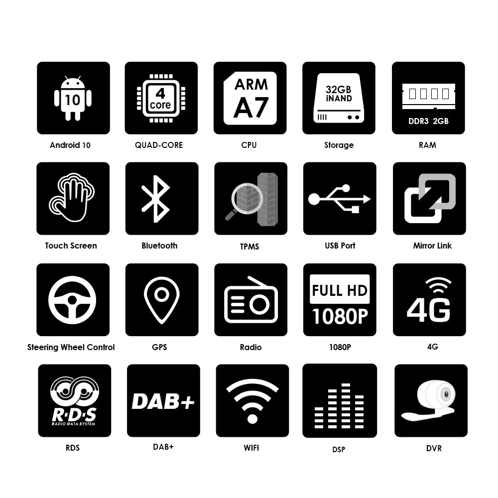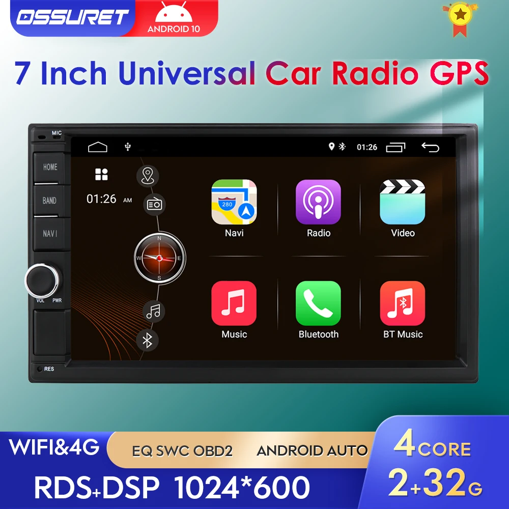 Автомагнитола 2DIN, Android 10, 7 дюймов, мультимедийный плеер, GPS, 2 + 32 ГБ, DSP, IPS, RDS