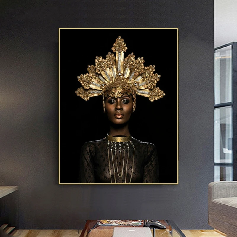 Холст с принтом Золотая Корона черная женщина настенная живопись Современная Стена искусственные роскошные декоративные картины для гостиной