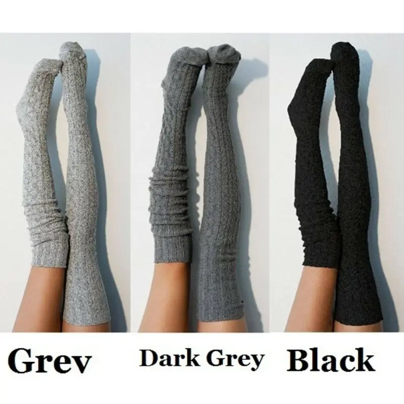 Женские носки выше колена, Модные женские сексуальные чулки, теплые длинные сапоги, вязаные до бедра, серые, хаки, синие, черные