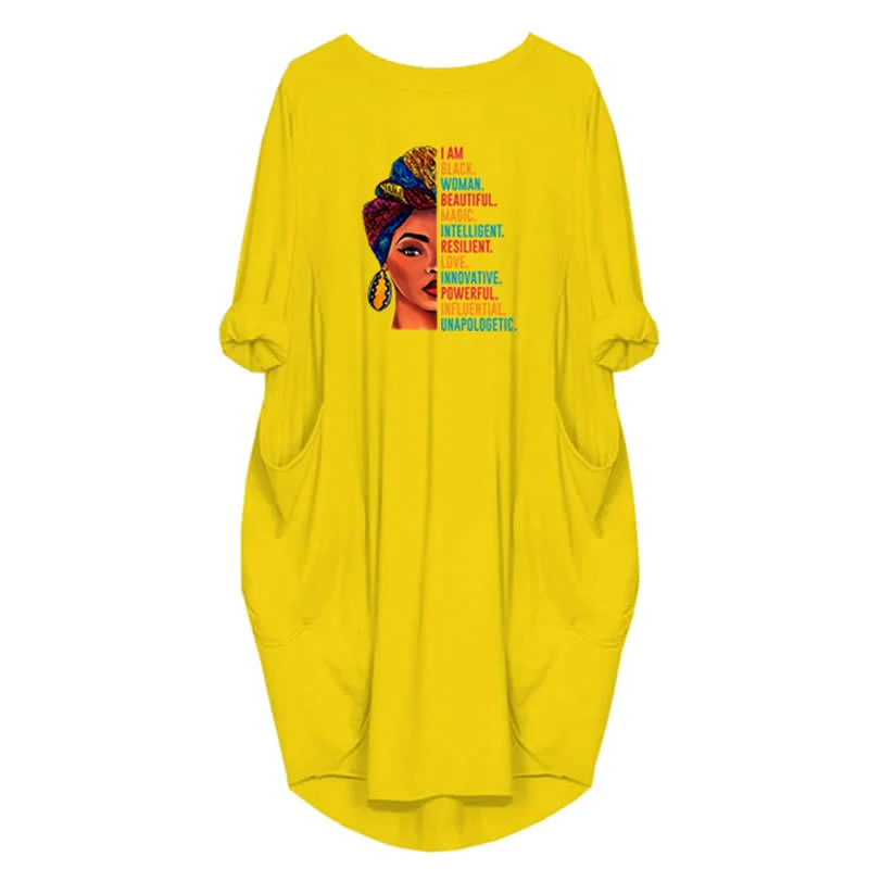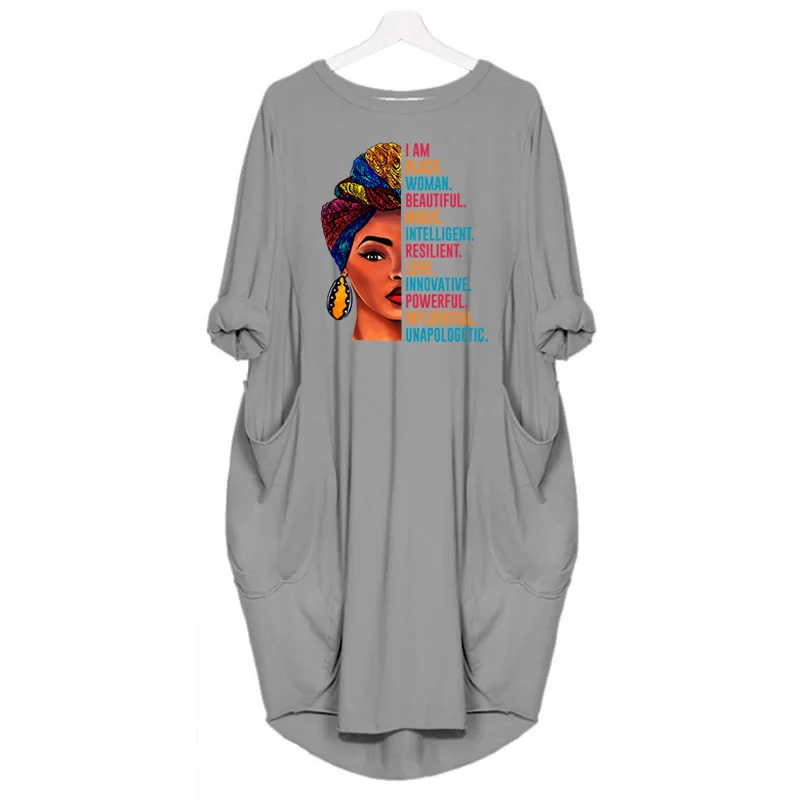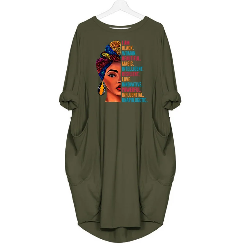 Женское Хлопковое платье с надписью I Am Black, с карманами, 100%