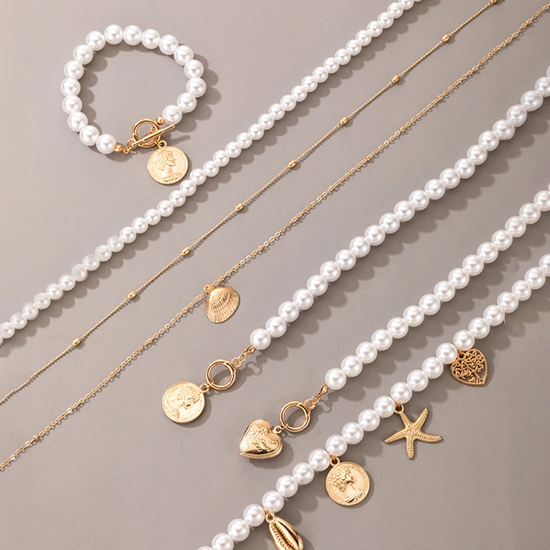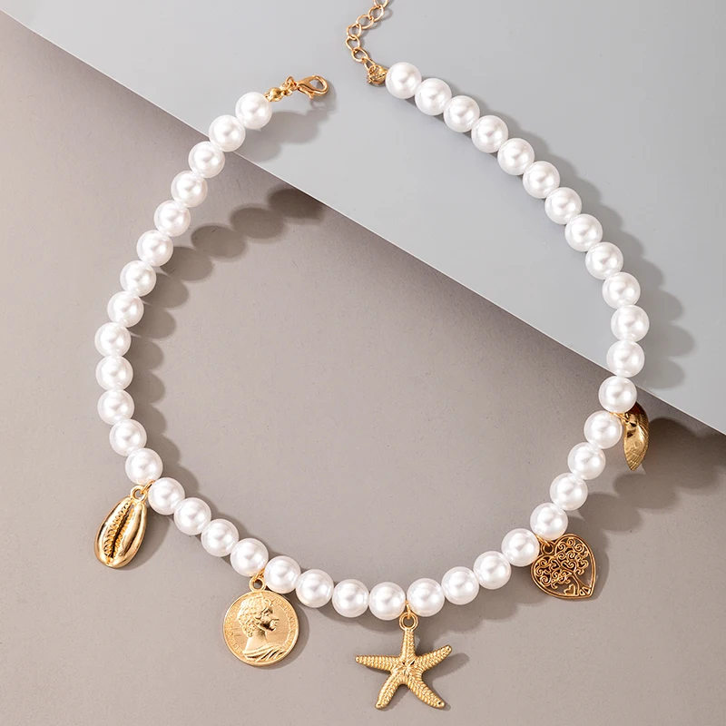 Колье-чокер женское многослойное с золотыми ракушками, монета с портретом