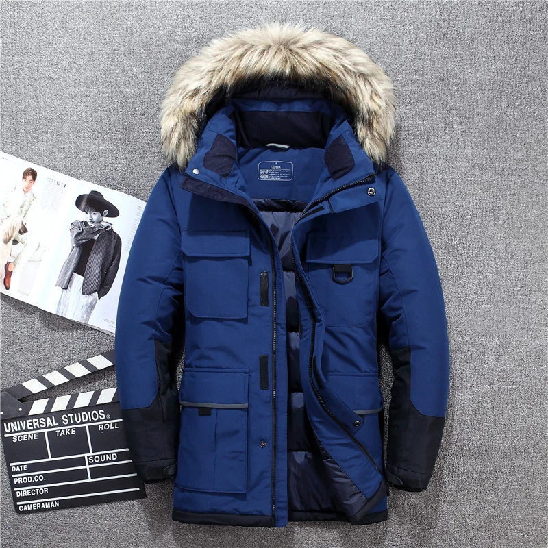 Высококачественный толстый ветрозащитный мужской пуховик с меховым воротником, съемная Фирменная зимняя куртка для мужчин, зимняя верхняя одежда на-40 градусов