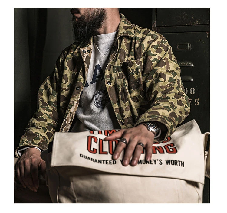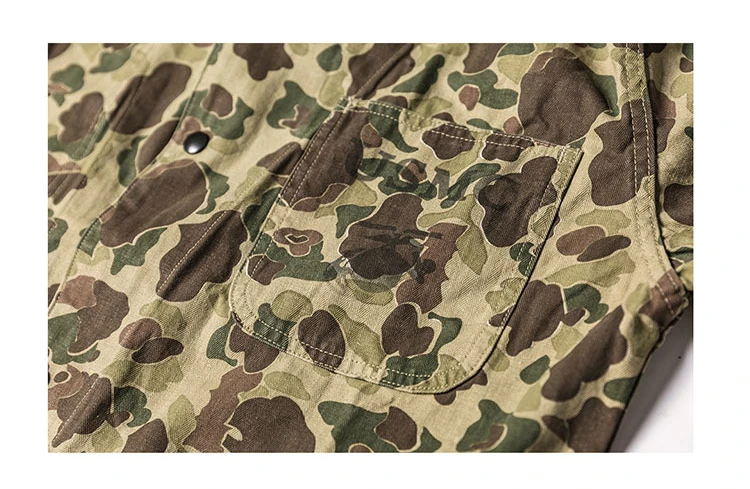 ⦁ 100% хлопок, саржа в елочку на 10 унций⦁ Изготовлен из зеленого камуфляжного саржевого хлопка с узором «елочка»; КамуфляжныйStenтрафарет на левом нагрудном кармане⦁ Черные металлические защелки спередиThree три внешних накладных кармана⦁ Подробная информация о размере, пожалуйста, обратитесь к нашей таблице размеров для получения рекомендации по правильному размеру