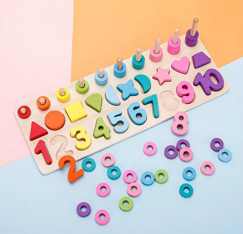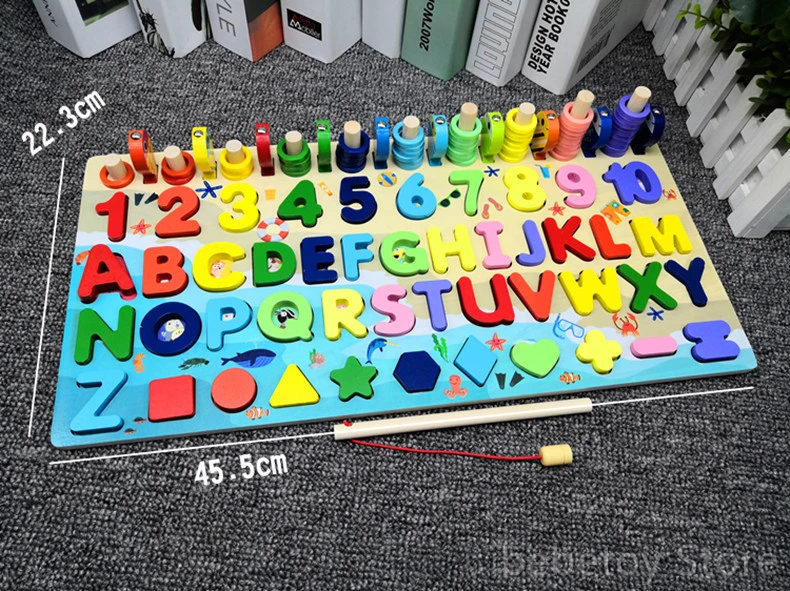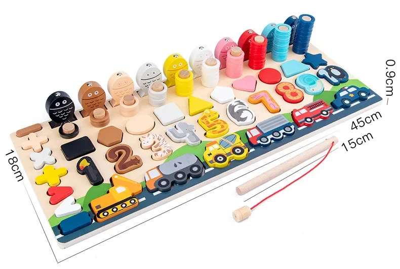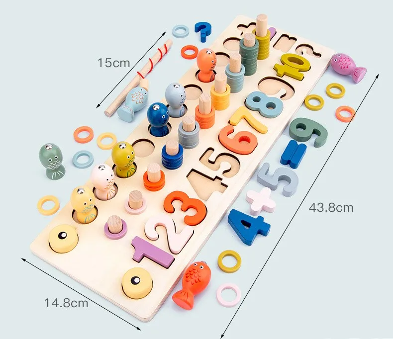 Обучающие деревянные игрушки Монтессори, детская деревянная Дошкольная занятая доска, математическая рыбалка, детская игрушка Монтессори с геометрическим счетчиком