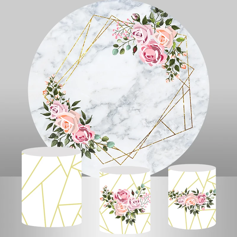 Круглый фон мраморная розовая роза, баннер на день рождения, свадебная фотобудка, Виниловый фон для торта, стола
