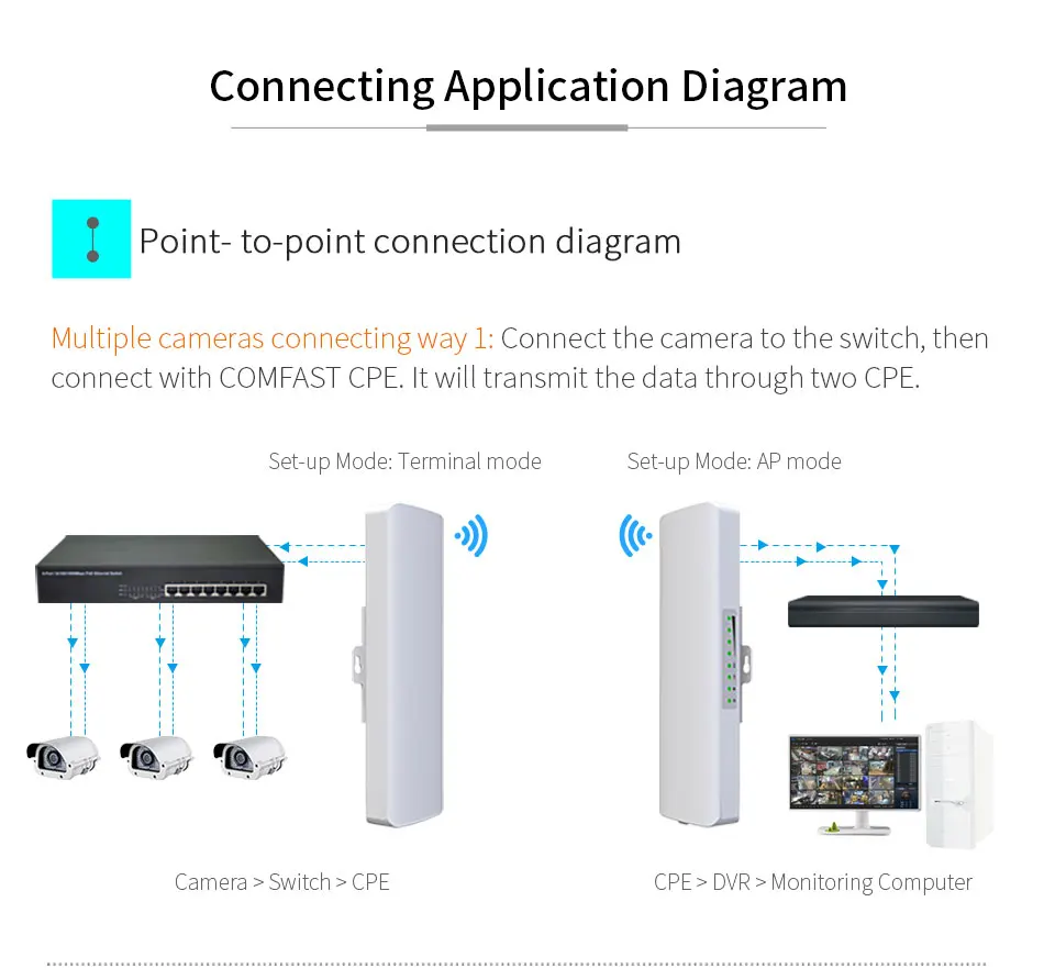 CPE bridge featureSupport 10-20 HD cameras