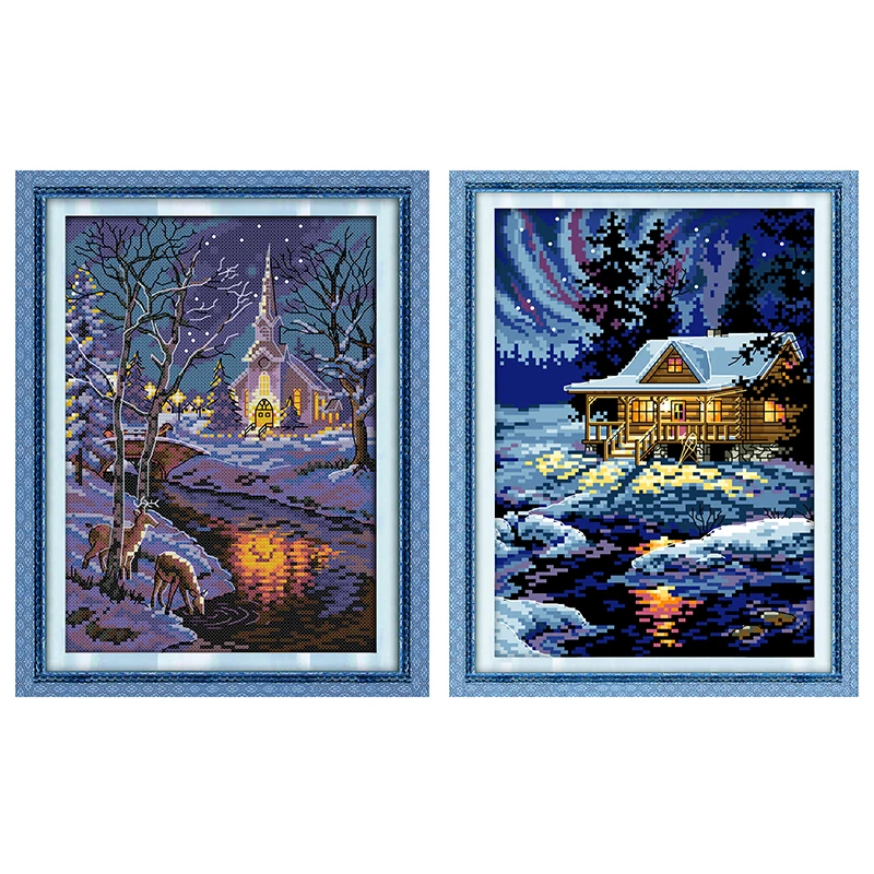 Наборы для вышивки крестиком зимние ночные картины засчитанный Печатный холст 11CT 14CT печать штампованная ткань наборы для вышивки