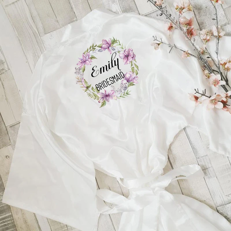 Свадебный Атласный халат, индивидуальное имя, цветочный принт